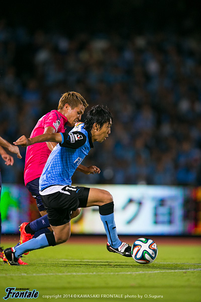 46分、フロンターレの攻撃。中村を起点にパスを大久保が左サイドへ展開。レナトがドリブルでしかけるが、DFに止められる。47分、登里がドリブル突破。スルーパスに反応した小宮山が左サイドからクロスを入れ、こぼれ球をレナトがヘッドで流し大久保がダイレクトで狙うが、シュートは惜しくもゴール右に外れる。迎えた49分、C大阪の攻撃。右サイドを永井に突破されクロスを入れられ、ファーサイドから飛び込んできた丸橋に押し込まれ追加点を奪われる。(4-2) 50分、C大阪の攻撃。左サイド裏のスペースを突かれ丸橋の折り返しを永井に合わせられるが、ボールはクロスバーに当たって外れる。危ない場面だった。51分、C大阪の攻撃。セカンドボールを拾われ押し込まれ、ゴール前で混戦となるがGK杉山が体を張って止めてピンチをしのぐ。53分、左サイドから崩しをかけられるが、守備陣がしのぐ。55分、フロンターレの攻撃。パスをつないで押し込み、中村のスルーパスに抜け出したレナトが左サイドから折り返し。大久保が粘って右サイドからシュートに持ち込むが、惜しくもDFにブロックされる。56分、C大阪の攻撃。攻勢をしのがれカウンターを浴びるが、守備陣が落ち着いて対応。60分、パスをつながれスルーパスを狙われるが、南野はオフサイドの判定。危ない場面だった。61分、森谷に変わり稲本が入りボランチへ。小宮山が右サイドへ移り4バックにシフト。62分、C大阪の攻撃。左サイドから崩しをかけられクロスを入れられるが、登里がクリア。ピンチをしのぐ。63分。丸橋の左コーナーキックは守備陣がクリア。64分、自陣でパスカットされ右サイドのフォルランに粘られシュートを打たれるが、ボールはゴール右に外れる。危ない場面だった。65分、フロンターレの攻撃。右サイドから崩しをかけて粘り、こぼれ球を拾った大島がシュートを放つが大きく外れる。66分、C大阪の攻撃。自陣でボールを奪い返されゴール前にボールを入れられるが、永井には谷口が対応。ピンチをしのぐ。69分、フロンターレの攻撃。C大阪の攻勢をしのいで反撃を狙うが、中村はファールで止められる。71分、中村の縦パスを受けた小林がタメを作り左サイドへ。レナトがシュートを放つが、惜しくもブロックされる。