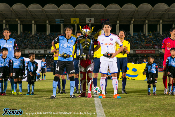 22分、フリーキックの流れから中村が左サイドからクロスを入れるがクリアされる。24分、右サイドの田中裕の折り返しを受けた小林が胸トラップからシュートを放つが、DFにブロックされる。25分、FC東京の攻撃。中盤でパスカットされ、エドゥーにドリブルからミドルシュートを打たれるが枠を外れる。28分、フロンターレの攻撃。東京の攻勢をしのぎ、左サイドへ展開。山越からレナトがボールを受けるが止められる。30分、谷口からパスを受けた小林が右サイドから鋭いクロス。田中裕が飛び込むが惜しくもブロックされる。30分、レナトの右コーナーキックはクリアされる。セカンドボールを拾って山越がスルーパスを入れるが、小林には合わず。32分、FC東京の攻撃。ペナルティエリア右前からのフリーキックの場面。太田のシュートはゴール右上に外れる。34分、フロンターレの攻撃。FC東京の攻勢をしのぎ反撃。パスをつなぎレナトが左サイド遠目からシュートを放つが、GKにキャッチされる。35分、左サイドから抜け出した山越がクロスを入れるがクリアされる。38分、FC東京の攻撃。裏のスペースに抜け出した武藤に左サイドから切り返されるが、井川がブロック。さらにボールを奪い返されるがパウリーニョが戻りクリア。38分、さらに押し込まれゴール前にボールを入れられるが、エドゥーのヘディングシュートはゴール右に外れる。39分、FC東京の攻撃。ロングボールからパスをつながれ押し込まれるが守備陣が対応。41分、左サイド太田のクロスをエドゥーにトラップされるが、守備陣がかき出す。危ない場面だった。41分、フロンターレの攻撃。直後に反撃。レナトが左サイドを突破。マイナスのボールを入れるがゴール前でクリアされる。42分、FC東京の攻勢をしのいで反撃。中村からボールを受けた谷口が右サイドからクロスを入れるがGKにキャッチされる。43分、小林のドリブル突破からカウンターへ。パスをつなぎレナトが左サイドをドリブル突破。強烈なシュートを放つが、GKの好セーブに阻まれる。45分、中村の右コーナーキックが流れ、クリアボールをパウリーニョがダイレクトで合わせるが左足のシュートはゴール左に外れる。アディショナルタイム1分。早い攻守の切り替えから一進一退の攻防が続く引き締まった試合展開。お互いにチャンスは作るものの決定打を欠き、スコアレスで前半を折り返した。