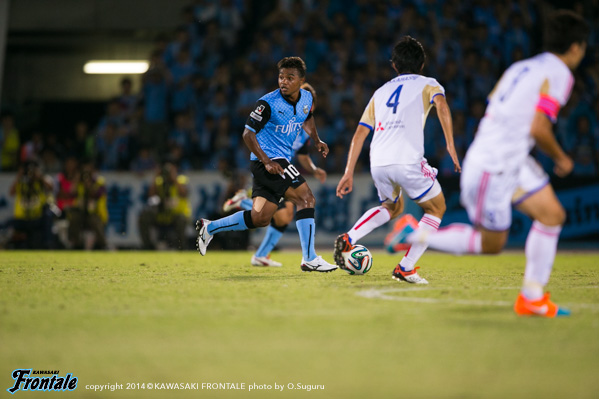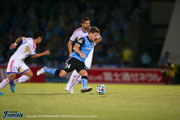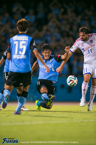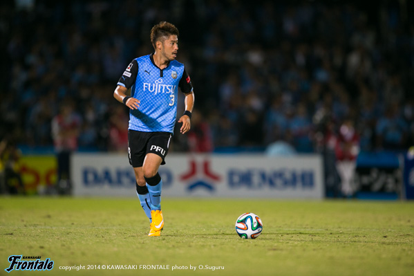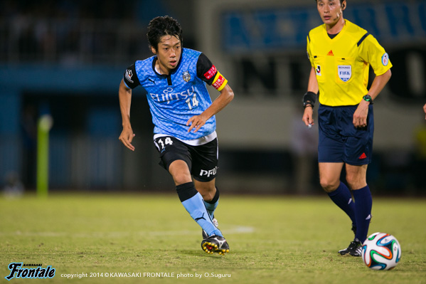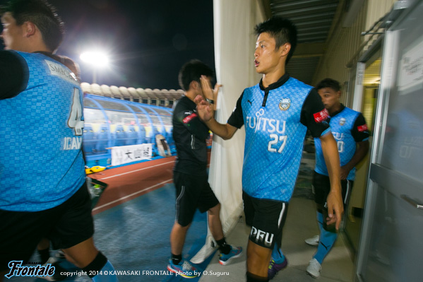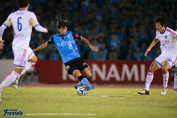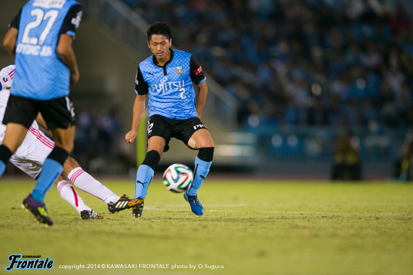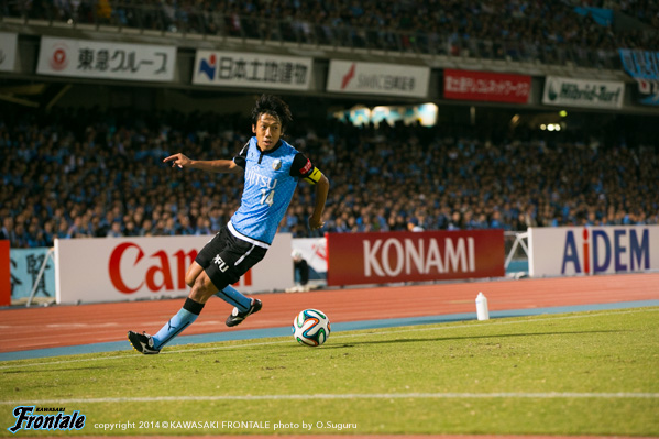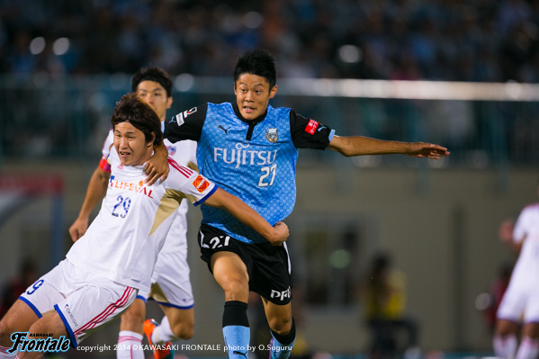 - もう少し決定機に絡めればよかった。今日はあまりボールに触れなかった。上がっていく時間とか、前でタメが作れなかったということはある。もう少し自分が上がっていく時間が無かったし、もう少し右の方で作ってというのがやりにくかった。もう少し触れればよかったが、でも左で作って右で僕が入って締めるという形が多いので、今日はそういう形があまり作れなくて、もったいなかったかなと思う。ビョンジュン(安柄俊)はどちらかというと、前で勝負するタイプなので、下がってきて作ってというのはヨシトさん(大久保嘉人)。ヨシトさんが真ん中にいると、斜めのランニングとかがいきるが、ビョンジュンだとやっぱりちょっと、最後のところでの勝負になるので、ケンゴさん(中村憲剛)がトップ下をやってそこはうまくやろうとしてたんだと思うが、ビョンジュンにももっとチャンスを作ってあげたかったと思う。