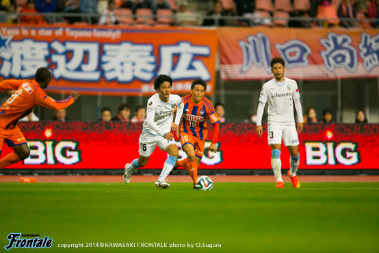 - 立ち上がりは向こうが前から来ていて、そこで自分たちのミスが出てしまって、個人的にもミスが多かったが、そこでいつもだったらそういう相手でもつなげているが、今日はそこで引っかかってしまい、向こうをのせてしまった。普段はそういう中でもやっているし、そういう相手でも押し込めていたので。自分が真ん中に入ってもっともっと効果的に効率よく攻撃に転じたかったが、そこでリズムが出なかった。決定機のところに行くまでにミスが多かったので、ケンゴさん(中村憲剛)とかにスッとボールが入るとチャンスになるし、ヨシトさん(大久保嘉人)もそうだが、そういう機会をもっともっと増やさないとダメだと思う。自分たちのポジショニングなのか、パスの精度なのか、トラップの精度なのか、そういうところだと思うので。でもそういうのはちょっとしたところで改善できると思う。僕達は、勝って行くしかないので、結構ショックな内容だったが、しっかり切り替えてやっていきたいと思う。