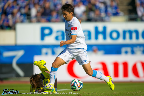 - 自分たちのリズムでプレーする時間は長かったが決めきれず、逆に一本のセットプレーでやられてしまった。チャンスそのものは多かっただけに、あとは本当に決めきるだけだった。FWとして責任を感じている。内容的には狙いとするサッカーがやれていたし、フロンターレらしさを出すことはできていた。個人的にも代表から帰ってきて楽しくプレーすることができたが、結果だけがついてこなかった。ただ、残り試合が少なくなってきて、内容より結果にこだわらなければいけない。DFラインを高く保ちながらコンパクトにやれていて、攻撃の迫力を出すこともできた。内容的には自分たちのいいときのゲームだったので、これを続けて次のホームゲームではしっかり結果につなげていきたい。
