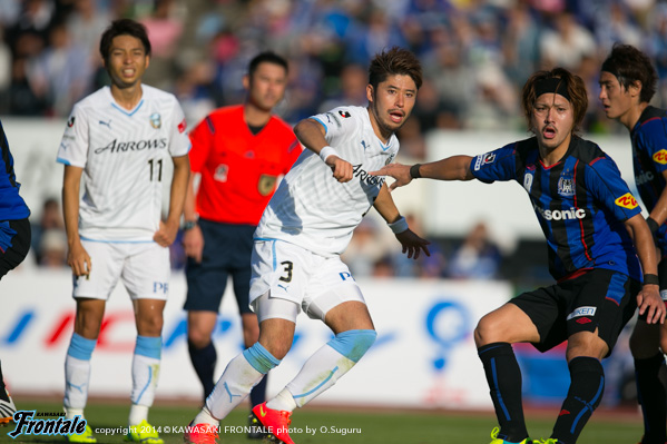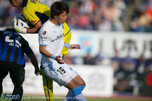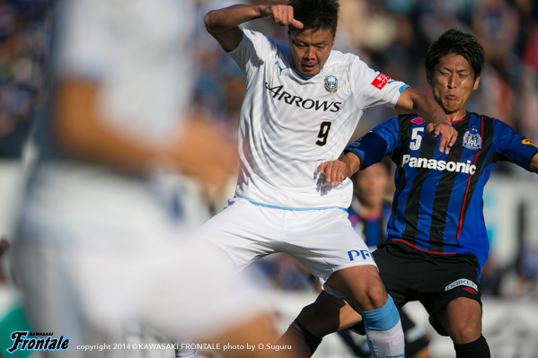 48分、G大阪の攻撃。パトリックへのロングボールから押し込まれるが、守備陣が落ち着いて対応。49分、フロンターレの攻撃。パスをつないで押し込むがラストパスにつながらず。50分、中盤でパスをつなぎ中村が浮かし球を入れるが、走り込んだレナトはファールをとられる。51分、G大阪の攻撃。ロングボールをパトリックに落とされ、宇佐美にミドルシュートを打たれるがゴール上に外れる。53分、自陣でボールを奪い返され宇佐美にシュートを狙われるが、田中裕と實藤でブロック。危ない場面だった。53分、遠藤の左コーナーキックはGK杉山がパンチング。中村がクリア。54分、フロンターレの攻撃。レナトが右サイドを突破。折り返しのボールを入れるがクリアされる。55分、G大阪の攻撃。最終ライン背後のスペースを突かれ大森に抜け出しを狙われるが、谷口がぎりぎりのところで対応。56分、遠藤を起点にゴール前でピンチを招くが、阿部の浮かし球は谷口がクリア。危ない場面が続く。57分、遠藤の左コーナーキックからゴール前で混戦となるが、守備陣がかきだす。迎えた57分、G大阪の攻撃。遠藤の右コーナーキックを米倉にヘッドで決められ、先制点を奪われる。(0-1) 58分、フロンターレの攻撃。中央でパスをつなぎ森島が強引にシュートを放つが、DFに当たってGKにキャッチされる。60分、G大阪の攻撃。パスをつながれ押し込まれるが守備陣がしのぐ。62分にもパスをつながれ、大森にスルーパスを入れられるが實藤が対応。63分、カウンターをかけられ宇佐美にドリブルをしかけられるが、守備陣がぎりぎりのところで対応。ピンチをしのぐ。64分、フロンターレの攻撃。ボールをつないでレナトが左サイドからクロス。小林がヘッドで合わせるが、惜しくもGKに止められる。65分、G大阪の攻撃。パスをつながれ押し込まれるが守備陣が対応。66分、遠藤の右コーナーキックを宇佐美に合わせられるが、守備陣がブロック。67分、右サイドから宇佐美にドリブル突破を狙われるが、登里が対応。68分、フロンターレの攻撃。パスをつないで右サイド裏のスペースに小林が抜け出し折り返すが、惜しくも森島には合わず。