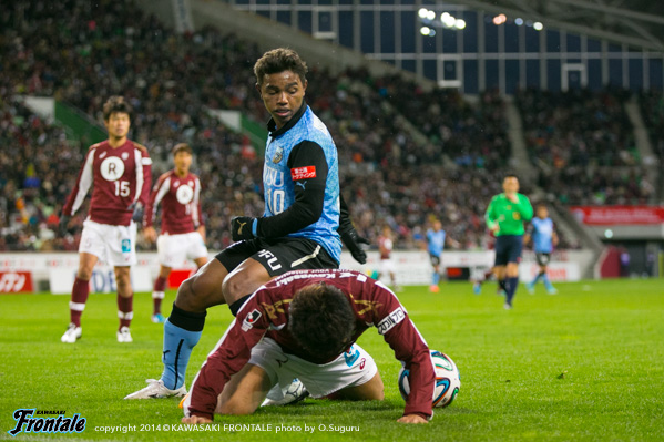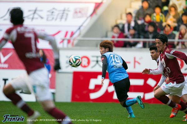 - レナトだったり、ヨシトさん(大久保嘉人)だったり、皆さんに助けられたという感じ。正直ピッチ状況も等々力と違ってやりにくかったというのはあるが、ボランチも潰しに来て、理想的にはもう一個前に、浮かした感じのボールを入れたかったが、そこの技術が足りなくて、サイドだったりバックパスが多くなってしまっていた。いかに前に付けられるのかは自分がやっていかなければならないところだと思う。最後の失点は自分のミスからだったので、ノボリくん(登里享平)ともう少し声をかけあってやれば対応できたと思う。0−0だった時にああいうプレーをしたとしたら、もうチャンスをもらえないと思うので、そう考えると今日は風間さんの期待に応えられなかったと思う。プロとしてやっていく上で、気持ち的なところも技術的なところも、すべてにおいて、もっと準備しなければならない。実際に出てやるというのはかなり差があると思うので、来年に向けて自分の課題も見つかったと思うし、そこを重点的にやっていけばもっといいプレーが出来ると思う。