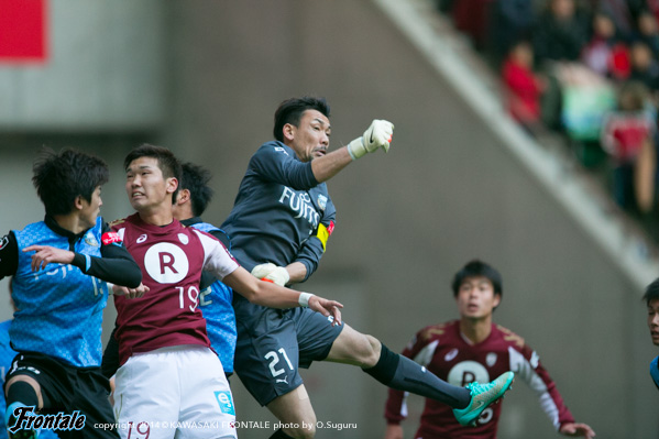- スタジアムのピッチに慣れるまで少し時間がかかった。前回も勝ちにつなげられなかったので、いい形で終えたかった。あとはイナさん(稲本潤一)を勝利で送り出したかったので、勝ててよかった。展開的には前回と同じで、後半に押し込まれてしまったが、ボールを大事にするところ、あとは割り切るところは割り切るというメリハリはあったと思う。できれば、もう少し早く追加点を取ってくれたら楽だったが。最後のPKは、相手のコースを読んでいたしドンピシャだったが。ポストじゃなければ止めることができたと思っていたし、ポストに当たって跳ね返るか入るかのギリギリのところだったので悔しい。無失点で終えたかった。