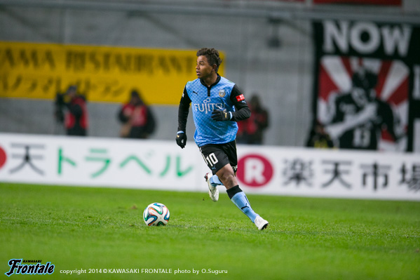 - 今日のゲームは、前を意識していた。後ろの選手が追い越してくれていたし、ケンタロウ(森谷賢太郎)が近くに位置取りをしてくれ、相手のマークキングなども含めてサポートしてくれた。ここ数試合、右サイドをやっているが、ブラジルでもずっとやっていたのでうまくできている。自分がどこのポジションで出ようと勝つことが一番。1点目は、自分の特徴を出すプレーが出た。ヨシト(大久保嘉人)も素晴らしいポジショニングをしていたから、あのゴールが生まれたと思っている。2点目のPKの場面は、最初自分が蹴ろうと思ったがヨシトが得点王争いをしていると思い出した。彼に取ってもらいたいと思ったので譲った。彼は得点王を取るに値する選手なので、そういった意味でもまた相手に差を付けるように得点王により近づけられるようにゴールしてほしいと思った。やはりあのような素晴らしい選手なので、PKも落ち着いてゴールを決めてくれると思っていたが、自分としては神様にお祈りして、彼に後押しをしてくださいという思いで最後は神に祈っていた。