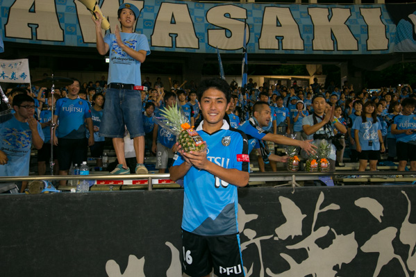 - まずは勝てたことが一番。次に進めることができてよかった。得点シーンはケンゴさん(中村憲剛)から前のスペースが空いていると言われていたし、パスが出てきたときに打てと声をかけられたので、おもいきりシュートを打つことができた。シュート自体が少なかったので狙っていたし、後ろからヨウヘイさん(西部洋平)からもどんどん打てと言われて、より意識が強くなった。天皇杯は去年も途中で負けているし、上まで行きたいという気持ちは強い。