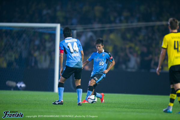 - 自分は去年の12月にドルトムントとヴォルフスブルクの試合を見ている。そのときと比べるとまだ全力ではないと思うが、それでもうまかった。個人的にはこのチームに来て、はじめて前でプレーさせてもらった。いつもとは違った感覚だった。1本惜しい場面があって、あそこでユウ(小林悠)が決めてくれれば一矢報いることができたが。でも、そこでしっかり止めてくる相手で、パワーを緩めていてもネットは揺らさせない。いい勉強になった。