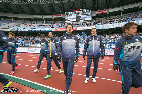 いよいよ2015年のJリーグが開幕。初戦はアウェイ横浜FM戦。今年から2ステージ制が採用されており、どれだけいいスタートを切れるかが大きなポイントになってくる。冷え込んできた日産スタジアム。15:03キックオフ。