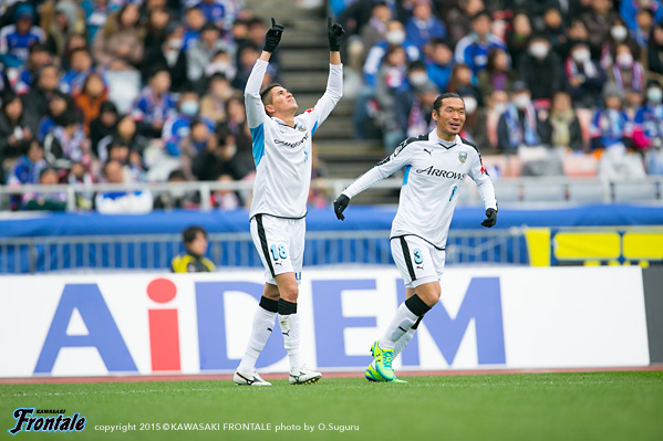 後半もフロンターレがボールを保持しながら焦れずにチャンスを伺い続け、中村のクロスを大久保が合わせて追加点。集中力を切らさず横浜FMの反撃を抑え、開幕戦を白星で飾った。