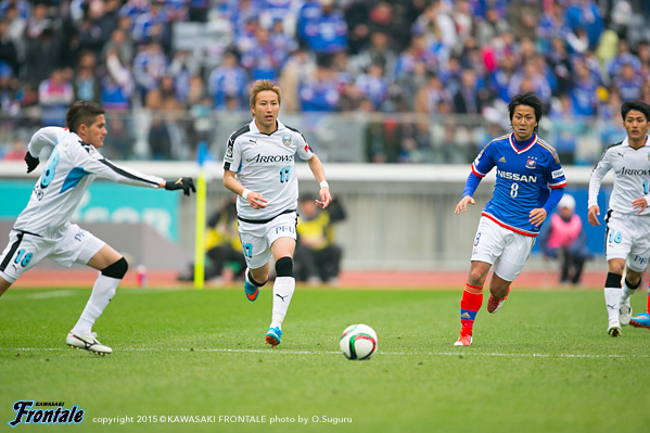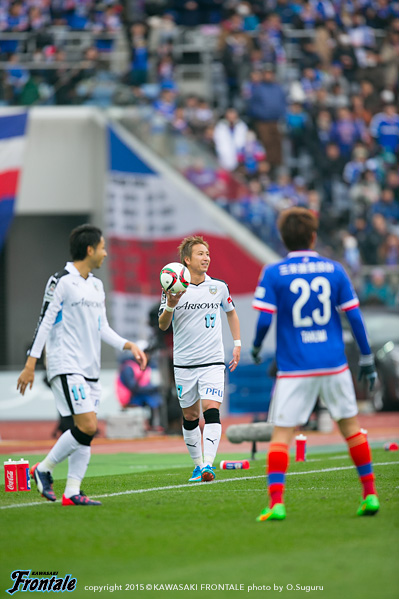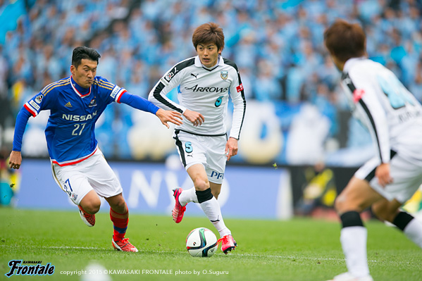 - みんな集中して入れていたし、早い時間帯で点を取れていたのはよかった。ただ、あそこまで相手が長いボールを蹴って来るという印象はなかったので、そこは試合が始まってから感じた部分でもある。そこさえしっかり対応すれば問題はないと思っていたが、そこで失点してしまったのは課題。それ以降は、うまく対応できていたと思う。2点目をすぐに取ることで、良い試合運びも出来ていた。前半に不用意な失点をしてしまったので、それで守備が締まったところもある。相手に前からボールを奪いに来られても、リョウタ(大島僚太)とケンゴさん(中村憲剛)が簡単にやってくれた。相手が来てくれた方がやりやすいし、自分のところで外すことも出来ていた。スペースもあったので、自分がドリブルで運んでいくことも意識していた。今日は開幕で神奈川ダービーということで、すごくいい雰囲気の中でプレーできたので、やっていても楽しかった。3-1という結果で、内容も圧倒でき、相手を押しこめたし、上出来だと思っている。ただ始まったばかりなので、次に向けて準備したい。