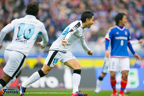 - 自分たちのサッカーが出来ていたと思うが、まだまだの部分もある。落ち着かせるところは落ち着かせるところ。常にゴールに行っていたので、もっとみんなで厚みを持って中にいかないと。そこはみんなと話し合って、もっとやっていきたい。ゴールの場面は、ケンゴさん(中村憲剛)なら、そこに来ると思っていた。ただボールが速くて反応ができなかった。うまく当たったような感じで入った。これ以上ない勝利。前半の途中からディフェンスのやり方を変えた。自分一人で相手の3人か4人を見なくてはいけなくなっていたので、前を2トップにした。ユウ(小林悠)と自分で相手を見て、それでやりやすくなった。間延びせずブロックを作ってコンパクトにしていたら、ロングボールを蹴って来たので、これはいけると思っていた。最初は相手も自分に厳しく来ていたが、後半はスペースが出来てくると思っていた。リードしていたので、そこで相手を走らせるようなサッカーが出来ていたし、それがフロンターレのサッカーでもある。まだ点が取れたと思う。初戦に勝っただけ。良い部分、課題の部分はこれからわかってくると思っている。
