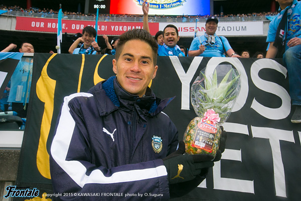 - ゴールを決めることができて嬉しかった。ただ、それ以上にチームの勝利をとても嬉しく思う。今日改めて、フロンターレは素晴らしいサポーターがいるんだと思った。そのおかげで勝つことができた。もっといい形でチームにフィットできるように、もっと貢献できるように頑張っていきたい。サポーターの皆さんには、次のホームゲームでもたくさん来てほしい。フロンターレはタイトルを獲るチャンスがあるクラブだと思うので、一緒にタイトルを獲りたいし、一緒に勝利の喜びを分かち合いたい。個人的には、家族が来てくれたことが、すごくいいモチベーションになっている。頑張っていきたい。