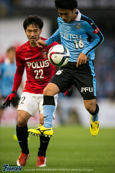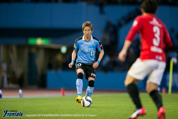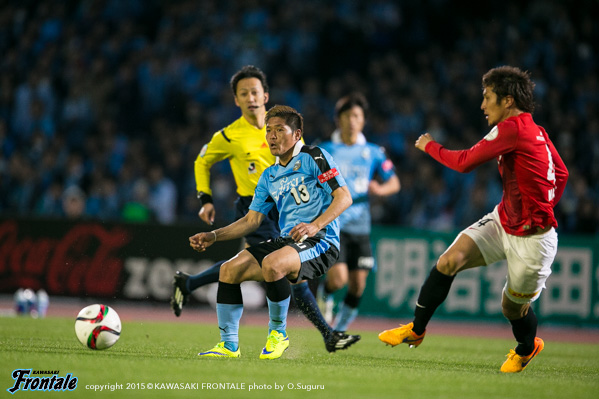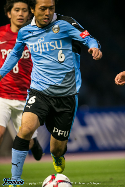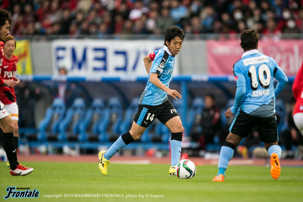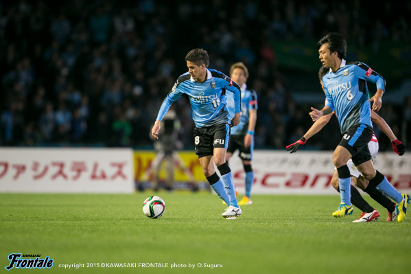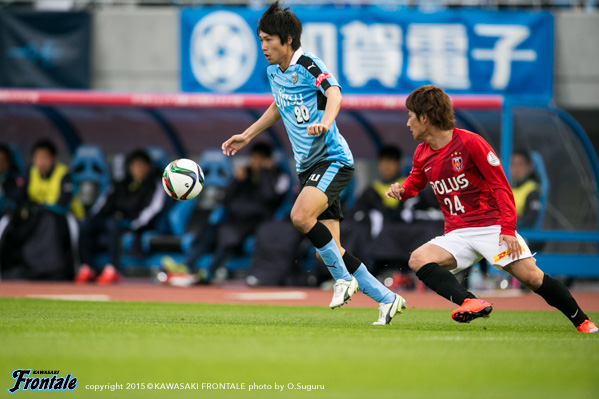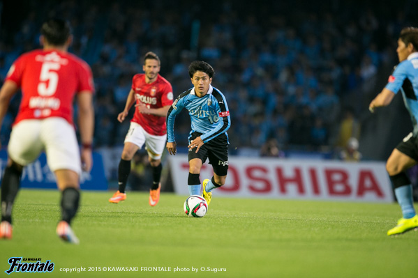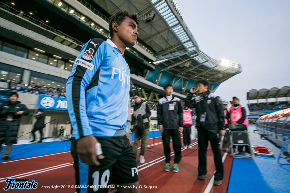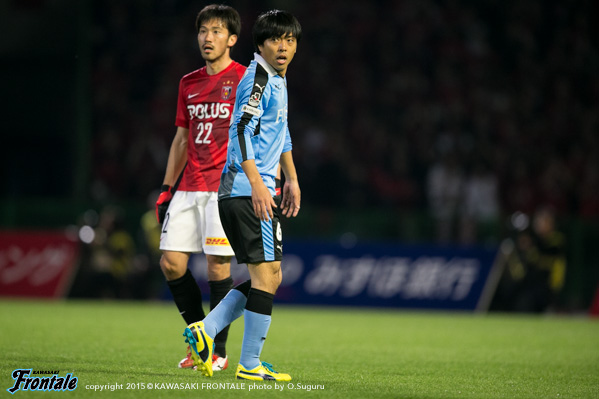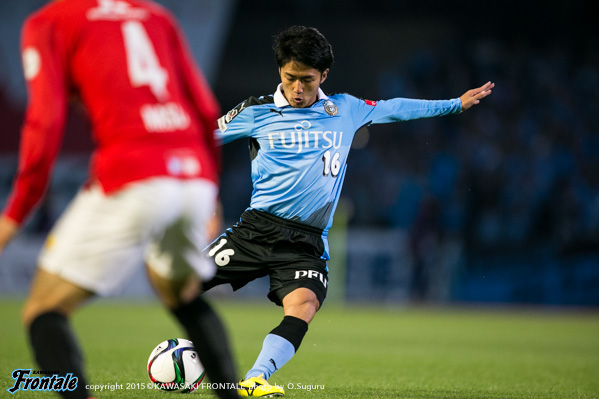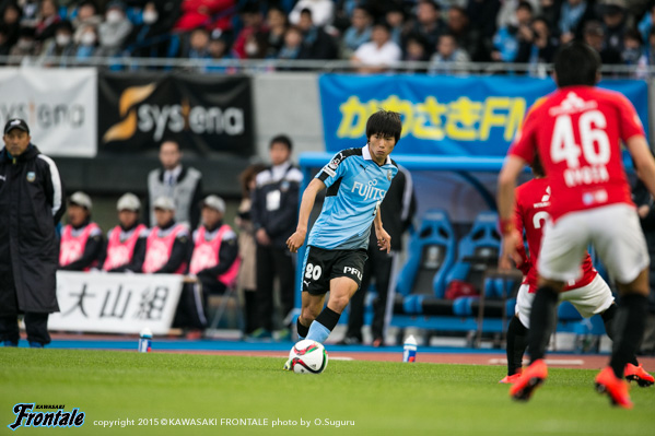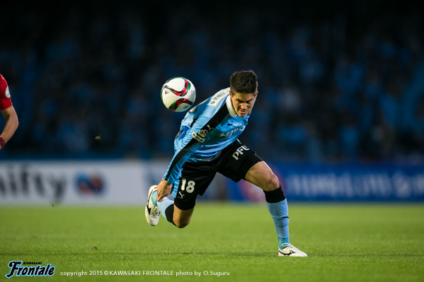 - 得点場面は、シンタロウ(車屋紳太郎)がすごくいいボールを出してくれた。あれだけ速いボールが来ても、ダイレクトでパスなりシュートというのは、自分の中でも自信があるプレー。しっかりと合わせられたし、慌てないで決めることができてよかった。前半は相手の間、間で入って自分とリョウタ(大島僚太)が前を向くシーンがあったし、自分のところが空くのはわかっていた。前半に関してはウチの狙いどおり。守備に関しても、前からハメていくのは意識していた。守備のときはそのほうがいいし、攻撃のときはポジションは自由に。ただヨシトさん(大久保嘉人)が守備でサイドまで走る場面が多かった。できれば自分がサイドまで戻って、ヨシトさんを真ん中に置いておきたかったが、こっちのほうがハマりやすかったのでそうしていたが、ヨシトさんにはもっとゴール前でプレーさせてあげたかった。後半に関しては、うちが守備にまわる時間帯が多かった。ただ最後のところでみんな身体を張って守っていたし、勝ちたかった。試合は続くので負けていないというのも大事にしていきたい。