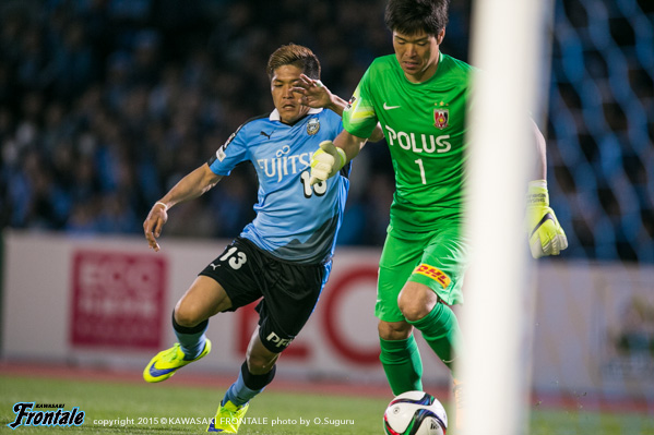 リーグ1stステージ第5節、ホームに浦和を迎えての一戦。首位浦和から勝点3を奪い取り、いい流れを継続させつつチームの勢いを加速させたい。曇り空の等々力陸上競技場。19:03キックオフ。