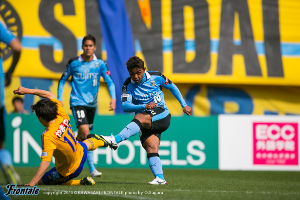 後半もボールは持てるものの、なかなか崩せない時間が続く。しかし我慢強く試合を進め、途中出場の小林がゴールを決めて同点に追いつき、さらにレナトがシュートを決めて勝ち越すが、仙台に圧力をかけられ同点に追いつかれる。終盤、どちらに転んでもおかしくない流れとなるが、レナトの突破から大久保が得点を挙げ、終盤の仙台のパワープレーをしのぎアウェイで勝点3を手に入れた。