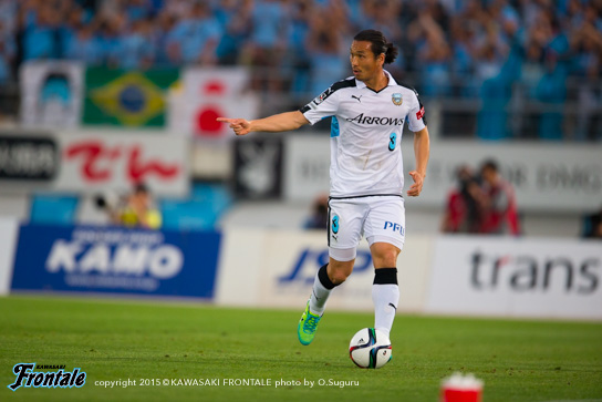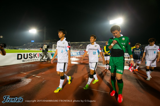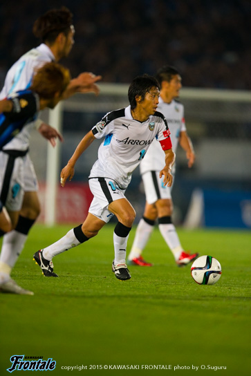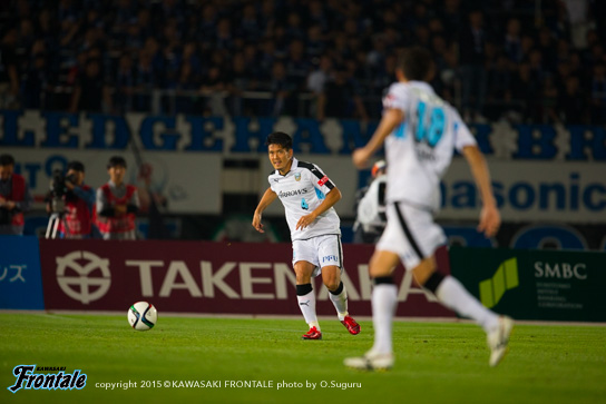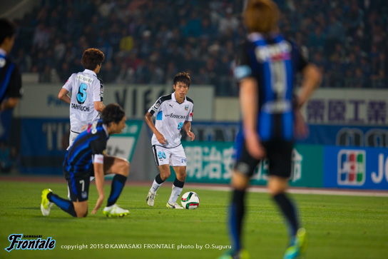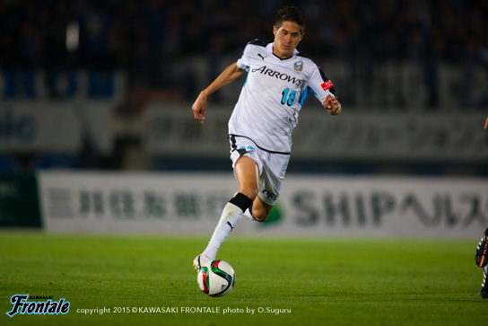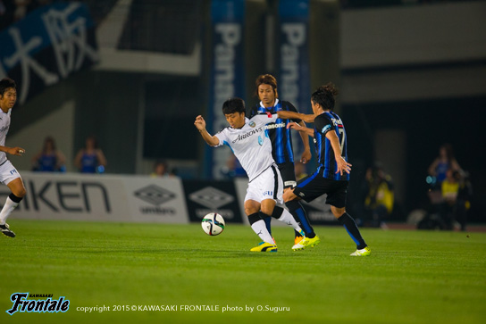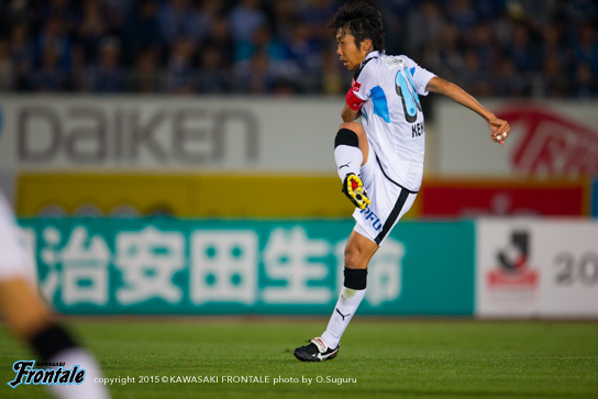 - 前半で3回ぐらいフォーメーションを変えた。自分は最初トップ下で、ボランチに下がって、3トップになって、2トップになって、最終的に3-4-3になってという感じ。相手も前から来ていて、なかなか自分たちのリズムにならなかった。ただ何とか1失点で終われたのが、後半につながったかなと。相手があれだけプレスをかけてきたので、90分は持たないと思っていた。向こうは引いて守ってカウンターという形だったが、最終的にこじ開けて、さらに勝ち越すチャンスもあった。それが前半からできればよかったが、後ろが重いというか、向こうの圧力もあって後ろが5枚気味になっていて、うちが攻めるときもそのままだった。後半一番変わったのはショウゴ(谷口彰悟)と井川が出てきて、エウソン(エウシーニョ)とシンタロウ(車屋紳太郎)も高い位置を取れるようになったこと。相手が引いていたというのもあるが、自分たちで押し込む形ができた。ショウゴとか後ろの選手が自分と同じ高さにいるといろいろなボールを出せるし、あそこが起点になってくれるとヨシト(大久保嘉人)も下がらなくて済む。前半は中盤でボールを持っても前に3人しかいなかった。後半は人数がいたので相手もばらけてチャンスを作れるようになった。点を取ったら守ってパトリックを走らせるのが相手の作戦。そこはショウゴがうまくつぶしてくれていた。前後半で好対照な試合になった。前半は相手の圧力に負けた部分もあるが、これまで自分とリョウタ(大島僚太)でゲームを作ってきたのでそう簡単なことじゃないし、周りもそれに慣れているので少しぎこちない感じはあったかなと。ただ、前半は相手の圧力を受けすぎた。一個飛ばして裏に出すとか、自分たちでやっても良かったと思う。馬鹿正直につないで引っかけられてカウンターを受ける場面が何回もあった。そこは個人で判断していかないと。長いボールを蹴ると思ったら、前も連動しなきゃいけない。自分たちがボールを握れば、相手がブロックを作ってもエリア内に侵入できる。それができれば相手も下がる。前半相手は下がる必要がなくて、うちはボールを奪われてカウンター受けていた。前に人数をかけるバランスがすべてだったかなと。人数が多ければ中盤からボールを出せるし、相手も下がるので。うちのいいところと悪いところがはっきり出た試合だと思う。