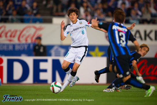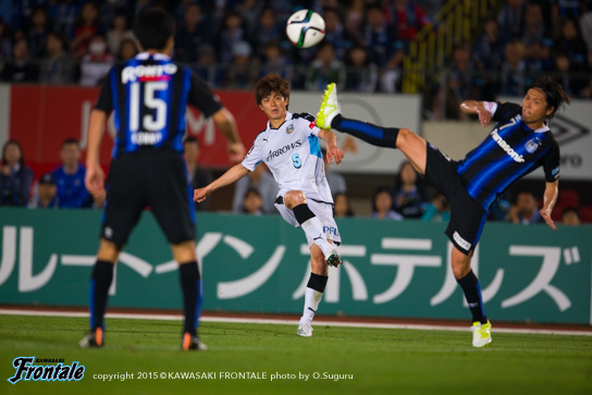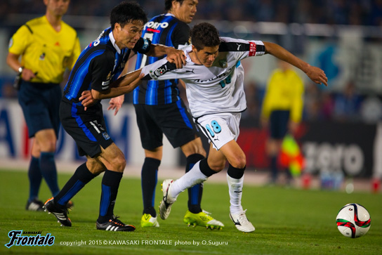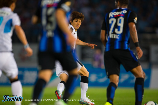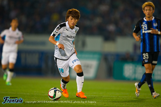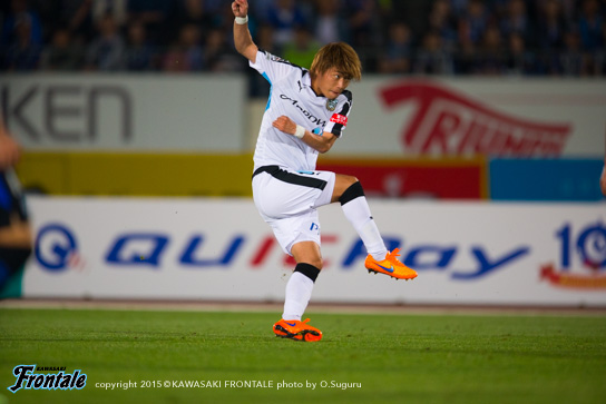 - 前半はリズムが悪かったし、自分たちがボールをどんどん回すことでリズムが作れた。ガンバも引き気味でサッカーをしていたので、多分1点をとれば逆転できるなとは思っていた。ただ、個人的な問題として、ビッグチャンスがもう1本あったので、そこで仕留められなかったのはダメ。ニアに思い切り蹴ろうと思ったけど、腰が抜けてしまった。ゴールはあまり試合でクロスをガンガン上げるチームでもないので。フロンターレとしても。ただ、あのときは来るかなと思って。自分が動き出して点で合わせることができればと思っている中でいいボールが来たので。ポストにあたっていい感じに入ってくれた。最初は外れたかなと思ったけど、良かった。ヨシトさん(大久保嘉人)だけじゃなくて周りの選手が点を取れるようになれば、チームとしてもっと強くなれると思う。ただ全然、悔しさのほうがある。引き分けで良かったという考えもあるかとは思うけど、1stステージでチャンピオンになりたいと思っているし、勝ち点3を取らないとダメな状況になっているので。0よりかは良かったが、悔しい気持ちがある。ケガ人も出ているが、今まで出られなかった選手が試合に絡めるチャンスだし、そういう選手が出て活躍することによってチームの底上げにもなってくると思うので、自分がそういうことを示していきたいと思う。次もすぐにあるので、しっかり準備して次は勝ち点3を取りたい。今日は家族と小学校時代にお世話になったチームの監督と、今そのチームに入っているちびっ子達が応援に来てくれて。横断幕を作ってくれていたけど、この場を借りて言うと、小学校のチームの監督がいなかったら今、自分はここでプレー出来ていなかったと思うので。本当に感謝しているし、そういう意味でゴールを捧げることが出来て良かった。ただ、勝利もしたかった。そこは残念。個人的には代表で気持ち的にいい刺激をもらった。このまま呼ばれ続けたいし、チームが勝つことが自分にとっては嬉しいけど、ゴールで自分を示していかないとまた代表に呼んでもらうことができないので。そのためにもクラブでしっかりやっていくことが大事。1試合で満足せず、2試合3試合と続けて自分が点をとってやるという気持ちで、チームを助けられるようなプレーをやっていきたい。