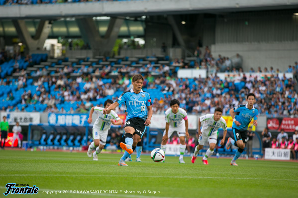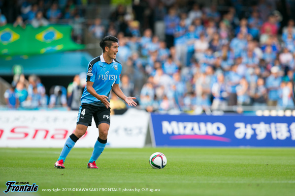 - エウソン(エウシーニョ)、サンキューという感じ。そういう試合だった。前半は相手の組織を崩し切れず、相手の陣形の前でボールを回している感じだった。ボールを前に運べず、縦パスを出せる一瞬のチャンスを逃していて、そのまま前半が終わった。ハーフタイムに監督がこのままやり続けようとメンタル的な部分を言っていたし、選手自身もこのままじゃダメだという気持ちでネジを巻き直した。後半、ケンゴさん(中村憲剛)が入って、すぐに同点に追いつくことができて、そこでチームの流れを作ることができた。後半途中から3バックの右に入ったが、去年もやっているのでそこまで違和感はなかった。右サイドが空くのは分かっていたし、エウソンとうまく絡みながら仕掛けていければ良かったが、エウソンがかなり疲れていた。でも最後の最後の一撃で集中していたのはさすがだし、あそこでシュートを撃つ勇気もそう。全体練習後に左足のシュートを練習していたのも見ていた。チームとしては勝つことができて、とりあえず落ち着けると思う。苦しい試合だったが、久々に等々力劇場が見れて、内容があまり良くない試合だったがために、より喜びが倍増した。1stステージは残り少ないが、連戦を終えてリフレッシュして、ケガ人が何人か戻ってくると思うし、いい形で連戦を終えたことに関しては良かった。これからも1試合1試合大事に全員総力戦で頑張っていきたい。