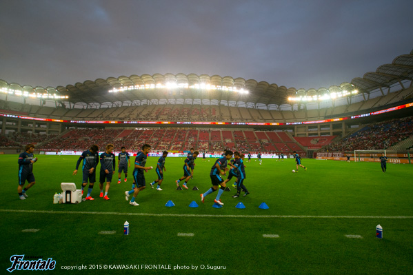 1stステージ最終節となる第17節アウェイ鹿島戦。目の前の試合に全力を尽くし、2ndステージに向けて弾みがつくような結果を手に入れたい。ぐずついた空模様の県立カシマスタジアム。19:03キックオフ。
