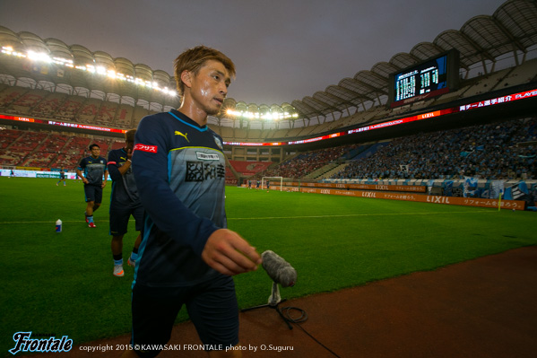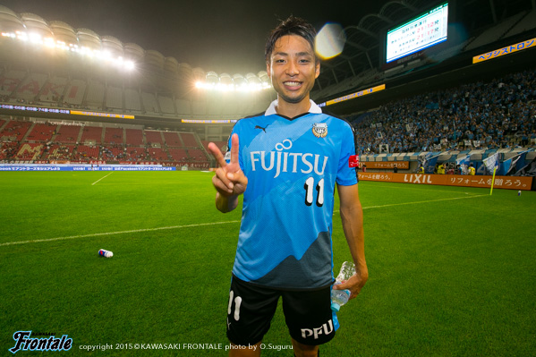 - ゴールを決めることができてとても嬉しかったけど、今日はとにかくチームが勝利できたことが一番。鹿島が相手で厳しい試合だったが、おかげさまで自分のゴールが、チームの勝利に貢献できたと思うととても幸せに思う。すぐに2ndステージが始まるが、僕たちは最後の最後まで力をあわせて戦い、必ずタイトルをとりたいと思っている。サポーターの皆さんには、これからもスタジアムに足を運んでほしい。