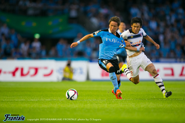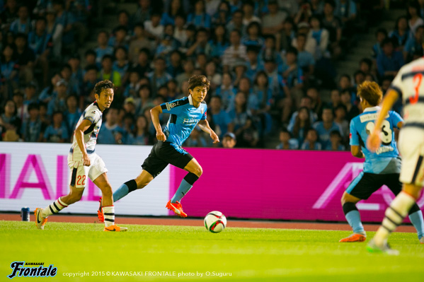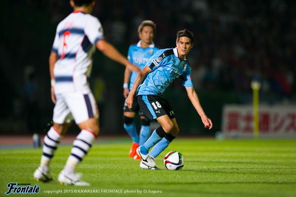 - 前半はボランチのショウゴ(谷口彰悟)とリョウタ(大島僚太)が横並びになっていた。センターバックとサイドバックでボールを回していたので、相手もなかなか崩れなかったのかなと。ケンゴさん(中村憲剛)のところに入れば、もっと楽にいけたかなと。ケンゴさんのところでボールが落ち着くし、動き出せばパスが出てくる。ディフェンスもはまるし、やりやすい。後半はこっちが点を取れて、相手がバテてきて、それからスムーズに試合を運べた。0-0のままだったらどうなっていたかわからない。ドルトムントと試合をやって、みんな普段のトレーニングから多少意識が変わったと思うが、もっと変わってもいい。うちは回してるけど、まだ怖さが足りない。ドルトムントみたいにどんどん回して、どんどん追い越して前に出てくるようにしないと。ポジションにとらわれずに攻撃できるようになれば、相手にとって怖いチームになると思う。前にボールを当てないと相手は怖くないし、どんどん上げていけばDFも下がる。そうすればもっとチャンスが増える。2ndステージ初戦で勝つことができて、いいスタートが切れた。