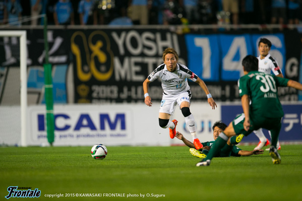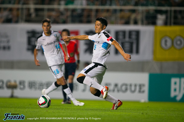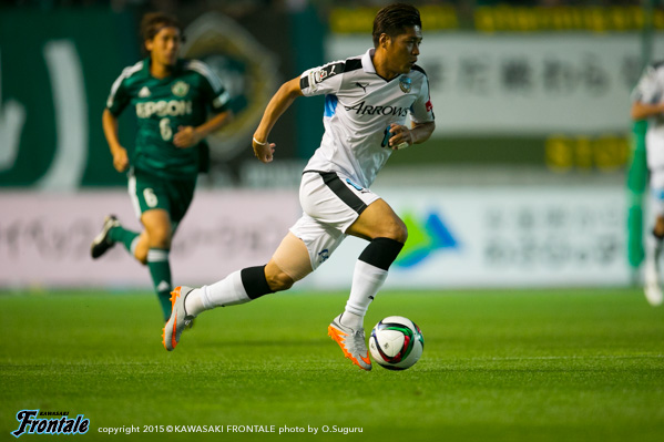 - 自分の動きをしっかりしていたら見てくれているし、ボールも出て来るので、このチームはやっていても楽しい。得点場面は狙いどおり。7月中に点が取れれば自分のなかで勢いに乗れると話していたが、実際にそうなってよかった。得点シーンはケンゴさん(中村憲剛)がプレッシャーをかけたときに取れるかなという感じだったので、その瞬間前に出ようと思っていた。うまくシュートに持ち込むことができた。毎試合点を取るぐらいの気持ちでやりたいし、アシスト、得点という数字で結果を出していきたい。前半に関して言えば、3点を取って相手も何もしていないと思う。文句なしというか、自分たちがやりたいサッカーができた。相手がボールに行けないようなパス回しをしていたし、2~3メートルの良い距離感でやれていた。前半のような形で後半もやりたかったが、相手を押し込む前に、相手のプレッシャーにやられてしまい、ボールが運べなかった。前にスペースはあったので、思い切ってボールを前に蹴って、そこで一回相手のラインを下げさせてしまえばよかったと思う。松本はそこからつなぎ直すというチームではないので、そこからロングボールを蹴らせてという形にさせればよかった。後半はチーム全体の動きが止まってしまったのが問題。普通はあんなに悪くはならない。無駄なファールも多かった。点差が開いて、知らず知らずのうちに自分たちで落としてしまっていると思う。自分も含めて集中力を欠く場面があった。相手が来ても剥がすことは可能だし、スペースはあったので、あんなにモロに相手のプレッシャーを受ける必要はなかった。そこはもっと考えていかないといけない。勝ったので結果に悲観することはないが、修正しなくてはいけないことは各々が感じていると思う。暑い中でもどうすれば精度を落とさずにやれるか。例えば同サイドのグループでコミュニケーションを取って修正していきたいと思っている。
