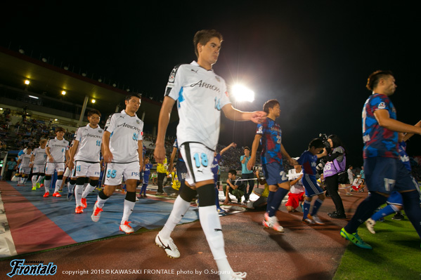 フロンターレは4バックにシフト。46分、フロンターレの攻撃。大島が右サイドから浮かし球を入れ、小林が裏のスペースで触るがゴール前でクリアされる。47分、リスタートの流れから中村が右サイドから浮かし球を入れるが、ゴール前を通過。48分、甲府の攻撃。セカンドボールを拾われ押し込まれるが守備陣がしのぐ。49分、フロンターレの攻撃。早いリスタートから中村が右サイド裏を狙うが中野には合わず。51分、甲府の攻撃。セカンドボールを拾われマルキーニョス パラナに突破を狙われるが、武岡が対応。甲府のファール。52分、フロンターレの攻撃。直後に反撃。速攻から田坂が粘り、小林が右サイドから速いボールを入れるがGKにキャッチされる。54分、甲府の攻撃。左サイドの阿部拓に突破を狙われるが、武岡とエウシーニョで対応。55分、フロンターレの攻撃。中央から突破を狙いこぼれ球に反応した大島がミドルシュートを放つが、GKのセーブに阻まれる。57分、右サイドから崩しをかけて大久保が浮かし球。ファーサイドの中村がヘッドで狙うが、惜しくもシュートはゴール上に外れる。58分、甲府の攻撃。自陣でボールを奪い返されショートカウンターを狙われるが谷口がクリア。59分、自陣でパスカットされ、バレーに強烈なミドルシュートを打たれるがゴール上に外れる。危ない場面だった。60分、フロンターレの攻撃。セカンドボールを拾って押し込み中野、中村とクロスを入れるがフィニッシュにつながらず。61分、右サイドからエウシーニョがクロスを入れるが、そのままラインを割る。迎えた66分、フロンターレの攻撃。中盤中央からのフリーキックの場面。ここで中村の浮かし球を谷口が左サイドから戻し、こぼれ球に田坂が体ごと突っ込み追加点を挙げる。(2-1) 65分、中野に代えて杉本がピッチへ。小林が1列下がり、大久保と杉本の2トップにチェンジ。67分、甲府の攻撃。右コーナーキックの場面。ショートコーナーから阿部翔にボールを入れられるが武岡が対応。