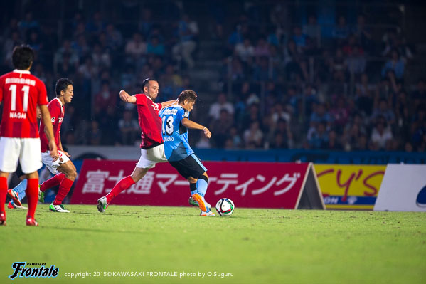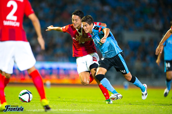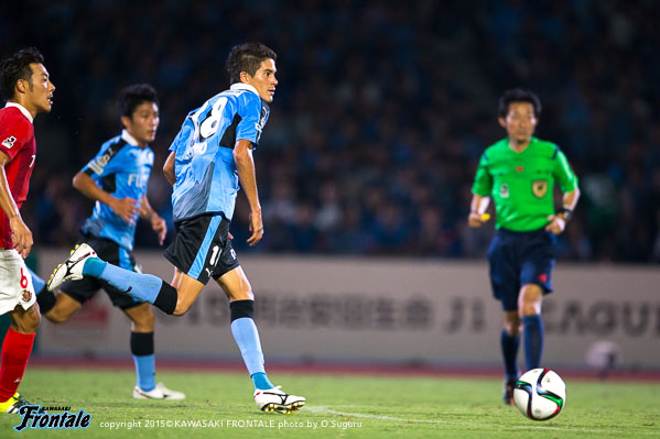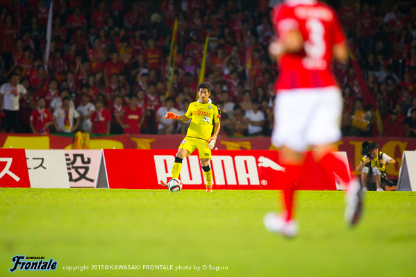 ユウ(小林悠)さんは背後に動いてくれるので、そこを見逃さないように。前の3人は流動性があるので、彼らに当てたところやスペースに自分もどんどん入っていくようにしている。ずっと得点を狙っていたので、ミドルシュートを打てるときには打つようにしている。…