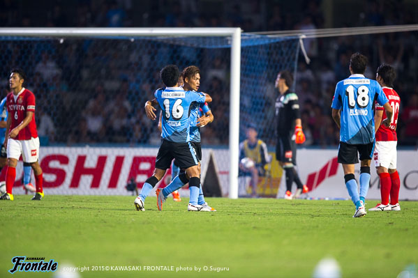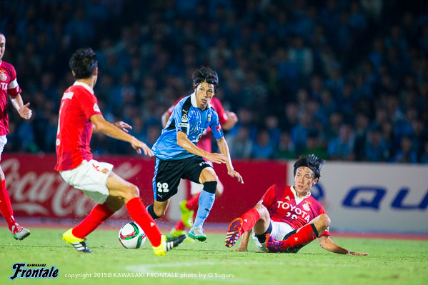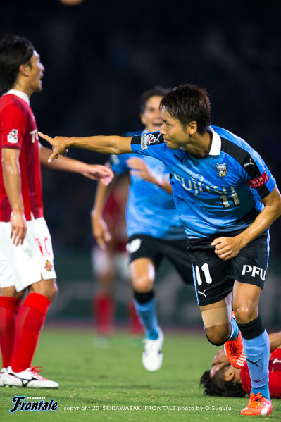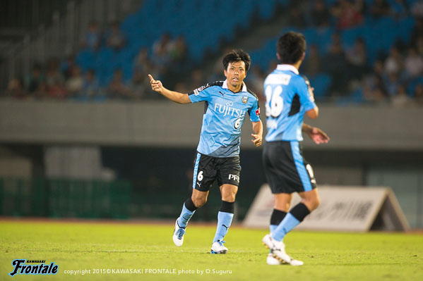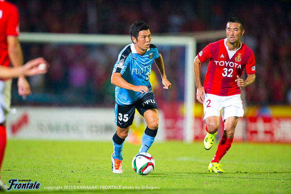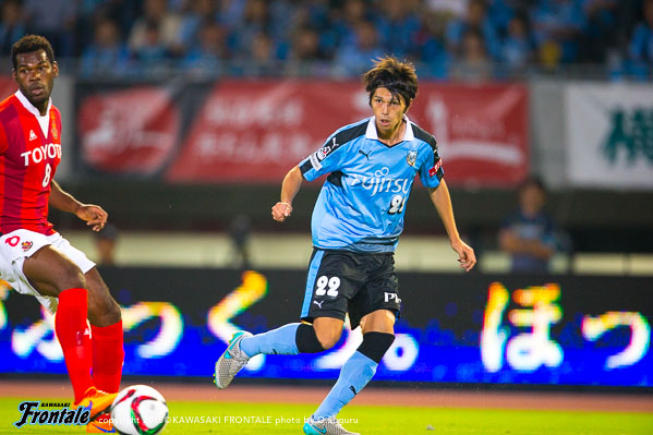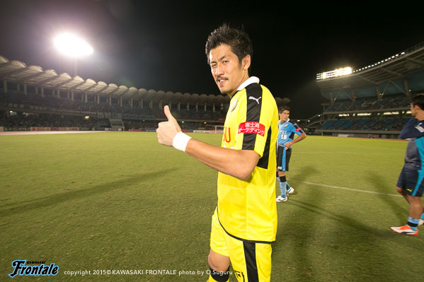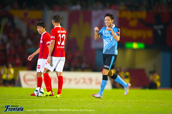 - 今日は人もボールもよく動いて、それがゴールにつながった。やっていて気持ちがよかった。いろんなゴールが出たが、自分としては5点目の人とボールが動いて中野がアシストしたヨシトさん(大久保嘉人)のゴールが良かった。ああいう連動した形で取れればベストだし、相手とすれば狙いどころがないので。名古屋が引いて守ってカウンター、セットプレーを狙ってくるのは分かっていたので、こちらとしてはシュートで終わること、攻撃をやりきることが大事だった。自分のゴールは最初ヨシトさんに出そうと思ったがタイミングが合わず、相手が寄せてくるのが分かったのでその逆を突いて背中を通すシュートを狙った。自分たちのペースを落とさずやり続けたことが得点につながったが、チャンスはたくさんあったので抜け目なくやればもう2、3点は取れていた。あとは攻守の切り替えの部分。攻撃ばかりに目が行きがちだが、相手ボールになってもすぐに奪い返して攻勢をかけ続けることができていた。それは選手の距離感がいいから。この1、2週間でやってきたことをピッチでうまく出すことができた。個人としては、肉離れした箇所も再発することなく、徐々にコンディションが上がってきている。自分のフィーリングとしては、いい感じで来ている。今日は6点取れた。ただ、点を取るのがフロンターレ。もっともっとほしい。この攻撃的なサッカーを続けて、また次も勝ちたい。また次もゴールを決めることができるよう頑張りたい。