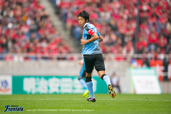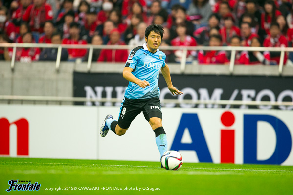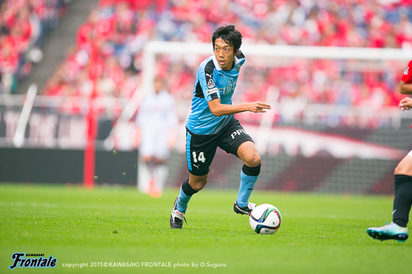 - この2週間、密集のなかでも前を向くトレーニングをやっていた。リョウタ(大島僚太)からいいパスが来たし、相手が前を向くと思っていなかったのか、関節視野で距離が少し離れていたのが見えたのでシュートを狙った。いいところに決まってくれた。シュートはトレーニングでいつもやってきたこと。公式戦で決めることができてよかった。全体的には守備の時間もあったが、自分たちのリズムでテンポよくボールを回すことはできた。今日はボランチだったが球際で戦うとか走るとか、ベースとなる部分は意識していた。技術以外のところでのプレーを期待してくれている人もいると思うし、球際でやられる場面もあったがリョウタとうまくやれたかなと思う。あとは攻撃の起点になれるような働きをしたかった。自分としては試合に出ていない時間が長かったので、90分持たなくてもいいから最初からエンジンをかけて全部出しきろうと思っていた。お互いに決定機があったが、やはり1-1というスコアは悔しい。次は天皇杯。しっかり準備をしたい。
