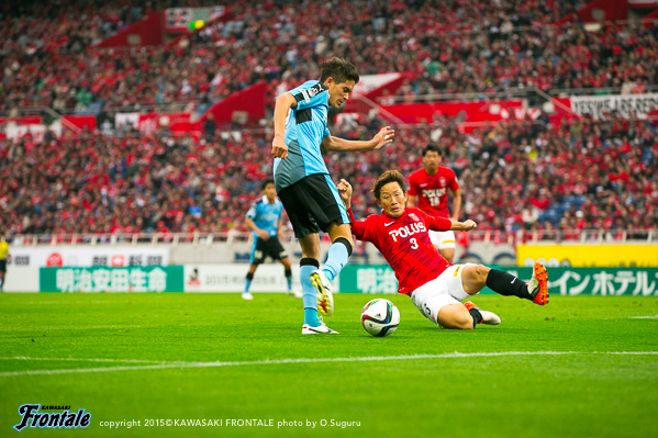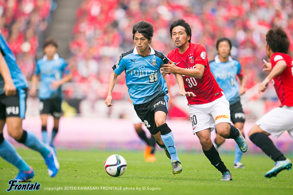前半、一瞬の隙を突かれて失点。その後も浦和に押し込まれる時間が続くが、我慢強くしのぎ、終盤、森谷賢太郎の素晴らしいゴールで同点。後半は、一進一退の激しい攻防が続くなか、ともに決め手を欠き試合終了。リーグ戦の連敗は2で止めるも、フロンターレにとって悔しい引き分けとなった。