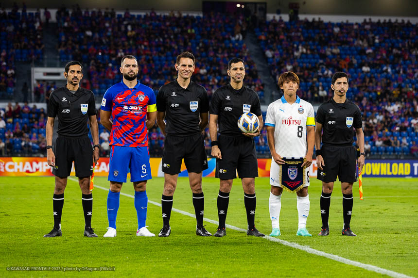 フロンターレのスターティングメンバーはトップにゴミス、左ワイドにマルシーニョ、右に家長、インサイドハーフに瀬古、脇坂、アンカーに橘田、最終ラインは登里-車屋-大南-山根、GKソンリョン。2分、フロンターレの攻撃。ゴミスが左サイドにサイドチェンジ。マルシーニョが収めて、左サイドから崩しを狙うがうまくつながらず。3分、右サイドからクロスを入れられるが大南がクリア。4分、フロンターレの攻撃。右サイドから崩しを狙い、山根がクロスを入れるがクリアされる。5分、右コーナーキック。脇坂のボールはクリアされる。6分、セカンドボールを拾って、相手陣内でボールを動かすがチャンスにつながらず。7分、速攻をしかけて、マルシーニョが左サイドから作り折り返し。走り込んだ脇坂がシュートを放つがブロックされる。8分、右サイド裏のスペースへのボールに山根が追いついて、クロスを入れるがゴール前でファウルを取られる。11分、相手陣内でインターセプト。ゴミスが突破をしかけるがファウルで止められる。13分、エリア右手前からのフリーキック。脇坂がシュート性のボールを入れるが壁に当たって外れる。14分、左コーナーキック。脇坂の速いボールを家長が合わせるがシュートは枠を外れる。惜しい場面だった。18分、ジョホールの攻撃。中盤やや左からのフリーキック。フアン ムニスのボールをベルグソンにヘッドで合わせられるが枠を外れる。18分、自陣でボールを奪われて、カウンターを狙われるがラストパスは大南がカット。20分、右コーナーキック。ショートコーナーからクロスを入れられるが山根がクリア。21分、遠めからエベルチー フェルナンデスにシュートを打たれるがゴール右に外れる。22分、中盤からスルーパスを入れられアリフ アイマンに抜け出されるがGKソンリョンが飛び出して止める。24分、リスタートの流れ、一瞬の隙を突かれ右サイドからボールが入ってゴール前で合わせられるが、ベルグソンのシュートはゴール左に外れる。危ない場面だった。