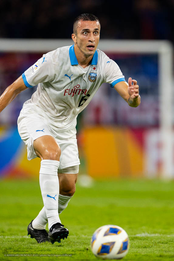 - 今回はアジアでの戦いだったが、気持ちよくプレーできた。自分はフロンターレで2試合目だが、チームが連勝できたことが非常にうれしい。2連勝する前はチームは苦しい状況だったが、そこから少しずつ自信を取り戻している。それはすごく重要なことだと思う。個人的にはゲームの中ではプレーだけではなく、自分の経験を生かしてていろいろな面からチームをサポートして貢献することも大切だと思っている。自分は新加入選手なので、新しいスピリット、そして新しいエネルギーをチームに注入しなければいけない。どのようにして前からプレスをかけるか、またプレスをかけるべきではないときにはどのように我慢するか。そこでの声がけやコミュニケーションが大事。ACLのアウェイで勝つことは簡単ではないが、自分たちの目標を達成しようと全員が素早くポジションをとって次のアクションに向かおうという速さを感じた。非常によかったと思うし、非常にうれしい。これから川崎に帰るが、日本でまた次の勝利を迎えるために努力は続けていきたい。