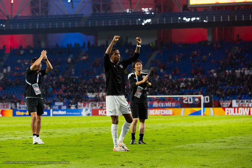 - チームに勝利おめでとうと言いたい。公式戦2試合連続で勝利することは簡単なことではないが、チーム一丸となって戦った結果が勝利につながった。このアウェイの地でフロンターレのサッカーを自分たちのリズムでプレーすることができたのもよかったと思っている。ゴールシーンはボールが浮いた状態で相手がプレッシャーに来ているのがわかっていたので、あれ(バイシクルシュート)しか方法がないと思って打った。プロとしては初めてのバイシクルシュートでのゴール。ただ、他にも3回チャンスがあった。そこで決めきれなかったのは残念だが、チームが勝利できたことが一番。ACLのような大きな大会に参加することができてうれしいし、これからも現状に満足することなくチーム全員でしっかりトレーニングをして勝利を収めたい。