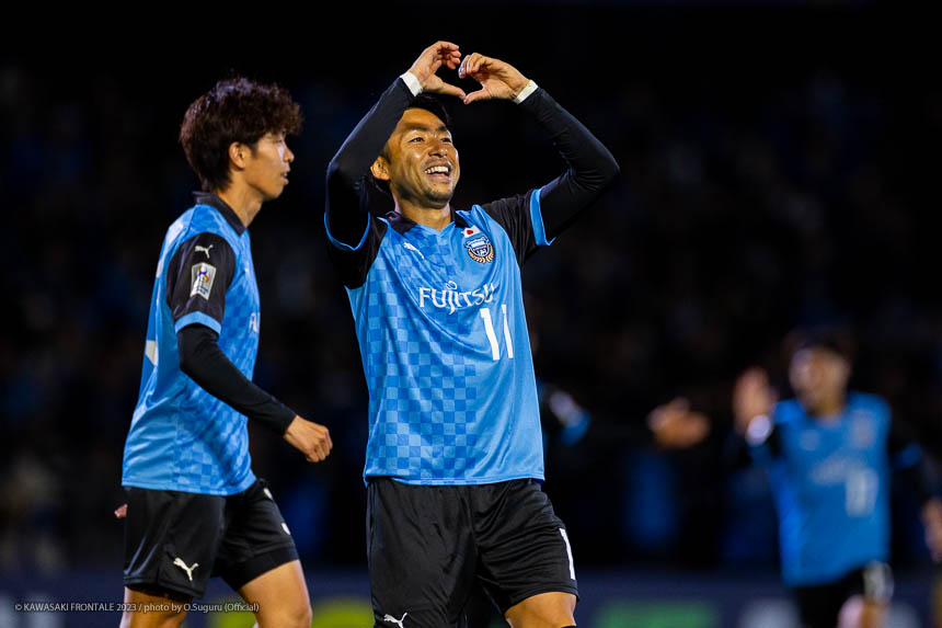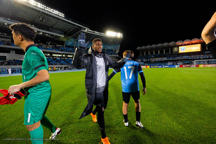 - リードしている状況だったが、チームとしてもう一つギアを上げるために、得点も守備も締めるためにピッチに入った。ゴールシーンはダイヤ(遠野大弥)が自分の欲しいところにクロスを上げてくれた。一度はセーブされたが体も反応して、ヘディングよりもカッコよく決めることができたのでよかった。個人としても辛い時期もあったが、自分のやれることを精一杯やってきた結果が最後につながってくると思う。まだタイトルが懸かった試合もあるし、自分がフロンターレを優勝させるつもりで1年間やってきたので、最後まで切らさずにやっていきたい。獲れていないタイトルがACL。フロンターレはACLに弱いと言われてきているので、必ずACLを獲ってフロンターレの強さをアジアに見せつけたいと思っている。