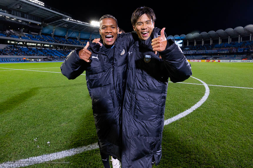- 試合前にタツキ(瀬古樹)とコミュニケーションをとっていて、積極的に前に走り抜けてくれと話していた。そのとおりに彼が走ってくれて、自分がフリーになるスペースを作ってくれた。それからアキ(家長昭博)からすばらしいパスが来たので自分は決めるだけだった。リーグ戦のホーム最終戦で2得点できて、今日もサポーターの皆さんの前でゴールを決めることができてうれしい。皆さんには感謝の気持ちしかないし、今日もチームが勝つ姿を見せることができてよかった。