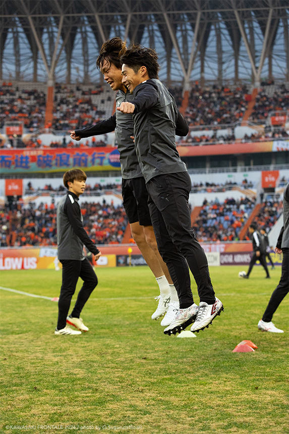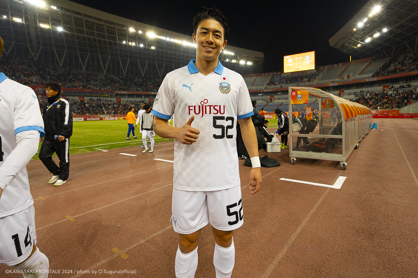 - 個人的にはこのスタジアムでのゲームは2戦目。2020年に重慶でプレーしていたときに初めてこのスタジアムでゲームをした。前回ゴールすることができたし、今回もゴールすることができた。でも自分のゴールというよりも、チームが勝利でスタートできたことがうれしい。対戦相手のサポーターの雰囲気も含めてすごくプレッシャーがかかる環境だったが、いいスタートが切れたのでまた次のゲームに向けていい準備をしたい。ヤス(脇坂泰斗)とは長くプレーしていて、ああいう形でのゴールシーンは以前もあったと思う。ヤスは本当にすばらしい選手。また彼だけではなくて、チーム全体としてもよかったと思う。