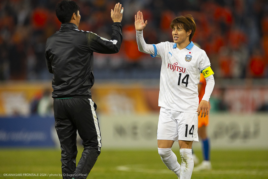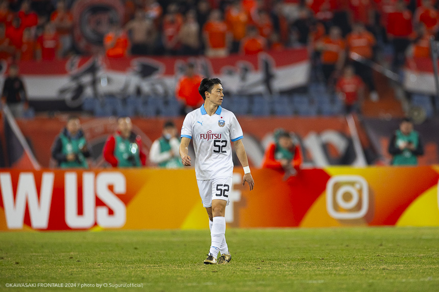 - 個人としては約5ヶ月ぶりの試合だった。キャンプではほとんどプレーできず、ぶっつけ本番のような形だった。自分のプレーに関しては、相手に守備ではめられていた感覚もあったので納得はいっていない。ただ後半はアキさん(家長昭博)とヤスくん(脇坂泰斗)と話をして、内側にポジションをとったときにマークをひとつはがせるようになった。それは次のホームゲームでも続けたい。チームとしてはやりたいサッカーができなかったと思うが、今シーズンの初戦で勝って次につなげられたのはよかった。今日は前の選手が3点を取ってくれた。できれば2点差のまま終われればよかったが、クロスを上げさせない、ファウルをしないといった細かなところを次戦に向けて突き詰めていきたい。