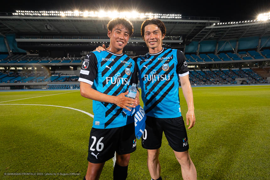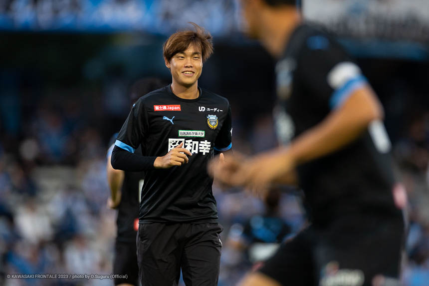 - 先制点を取ったところまではよかったが、そこからたたみかける部分で課題が出た。オニさん(鬼木達監督)も試合後に話していたが、自分たちで苦しくしてしまったゲームだった。マイボールにしてハーフコートゲームにできたら、そこまで苦しむような試合ではなかったと思っている。ただ、チームが勝つことが一番で、自分自身も結果にこだわっていた。自分のゴールで勝ち切れたのは自信になる。1点目は積極的にゴールを狙うという自分の特徴を出すことができた。ああやって足を振った結果、ゴールにつながってよかった。2点目の崩しはタイセイ(宮代大聖)がDFを引きつけてくれたのが見えた。ああやってゴール前に入っていけば、タツキくん(瀬古樹)のようにいいボールを入れてくれる選手が後ろにいる。うまく決まってよかった。追いつかれたあと、みんなで下を向くことなく声をかけあっていたので、まだまだいけると思っていた。実際に走り続けて中に入った瞬間、いいボールが来てシュートを決めることができた。信じて走り続けてよかった。