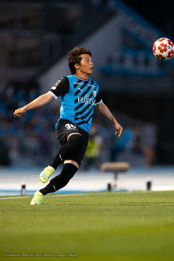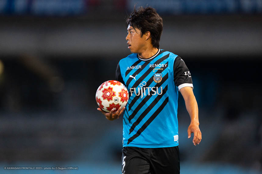 - 途中からピッチに入って右サイドバックだったが、最終ラインなのでまずは相手に自由にやらせないこと。あとは追いつかれた状況だったので、攻撃に絡めるようならアグレッシブに狙っていこうと思っていた。その意識が追加点につながってよかった。自分の前のスペースがかなり空いていて、ヤスくん(脇坂泰斗)がボールを持ったときに自分のことが見えているなと感じた。ヤスくんがシンプルに使ってくれたので、自分もシンプルにクロスを上げることができた。ああやって相手をひっくり返すことができればチャンスになる。そこは狙いどおりだった。ただ、個人的に攻撃面で少し雑になる場面があったと思う。サイドバックをやる上では、攻撃のクオリティをもっと上げなければいけない。上下動を続ける体力も必要になると思う。