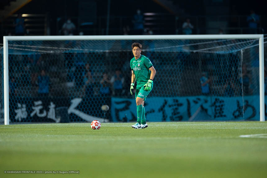 - チームとして求められているビルドアップ、そして最終ラインの背後のスペースのカバー、あとはいつシュートに持ち込まれるかわからないので試合前から準備していた。そこは日々のトレーニングから意識しているところ。カミ(上福元直人)やアンドウ(安藤駿介)、ハヤ(早坂勇希)もそうだが、チーム内での競争のなかで最善を尽くしてトレーニングを続けている。GK陣全体でもそうだが、個人的にも目の前の1試合に向けて常に試合をイメージして準備をしている。