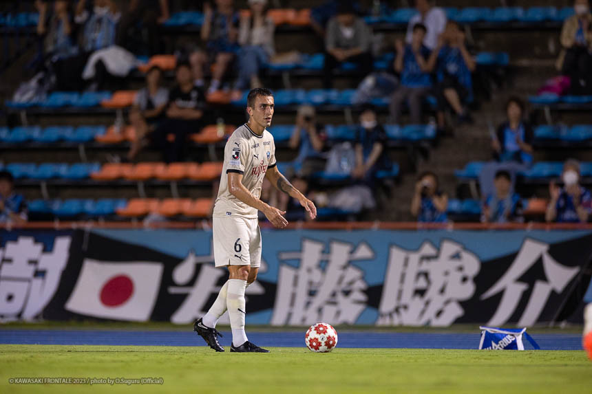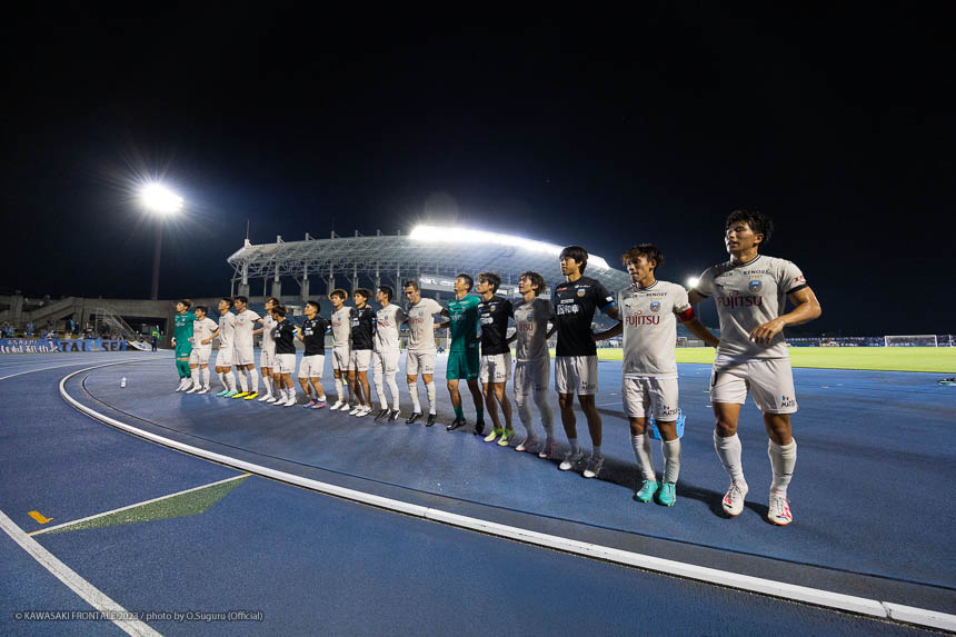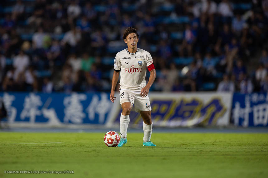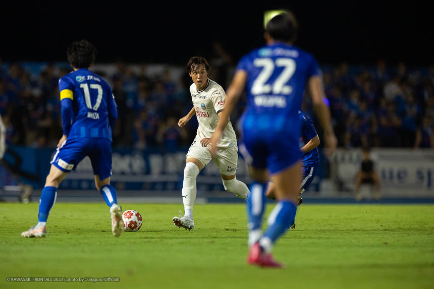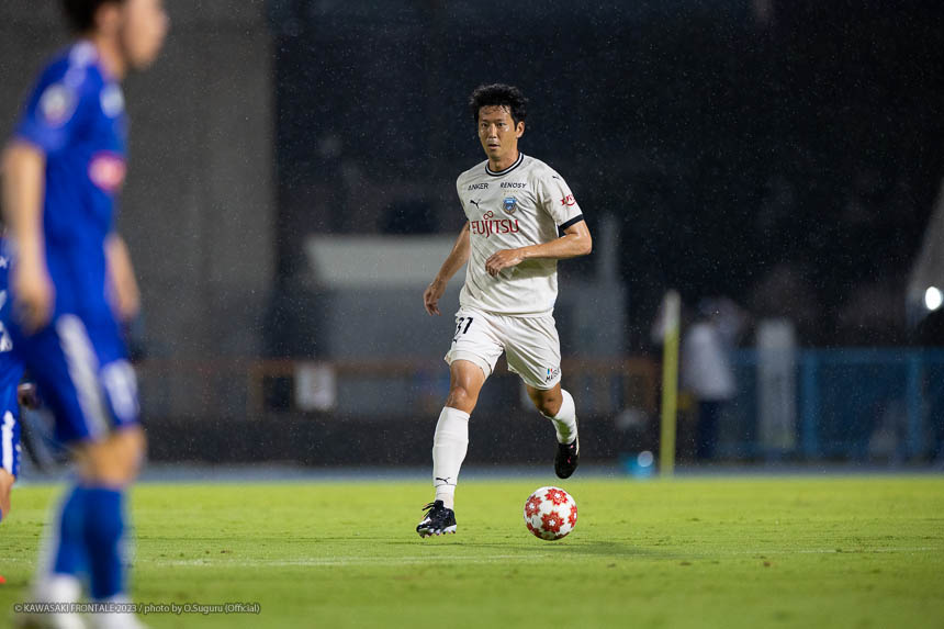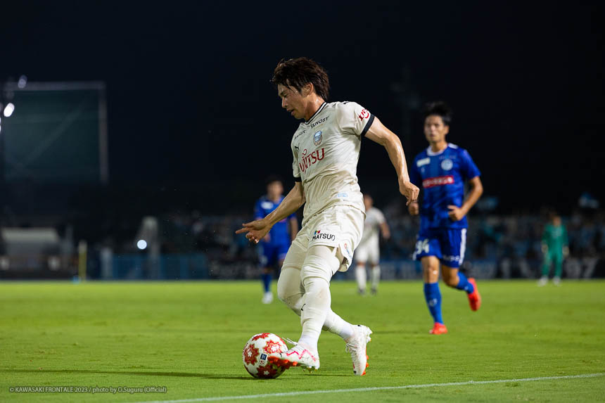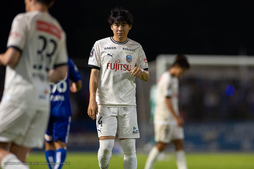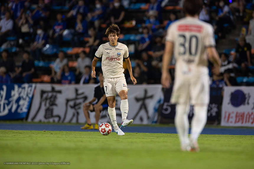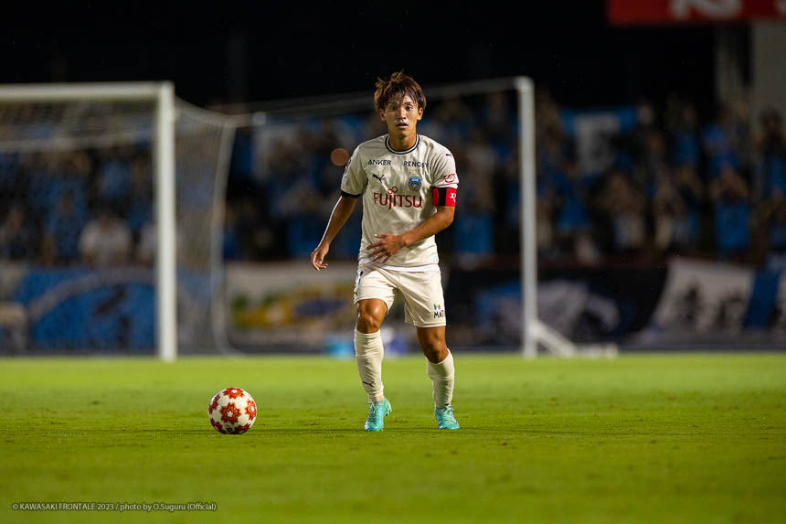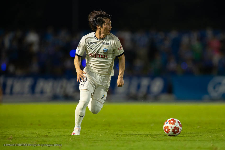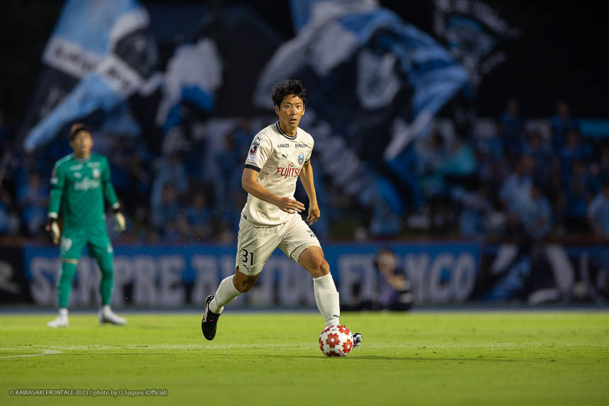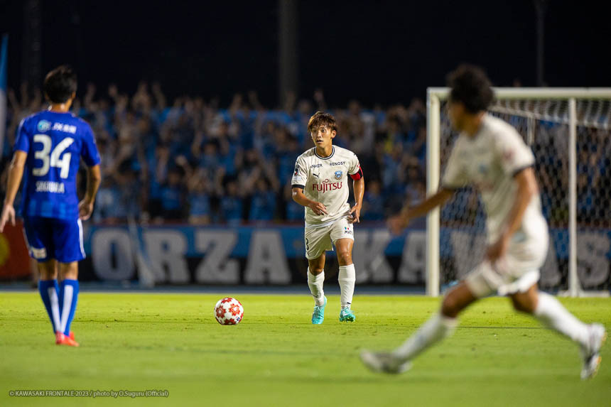 - Q.試合を振り返って チームとして勝ち切れたことが一番。ボールを受けてもプレッシャーが少なかったし、バイタルエリアが空いていたので、そこにつけて自分も入っていくことを意識していた。先制点のシーンは相手のミスからだったが、ボールを奪って縦につけてゴール前に入った。僕はクロスボールを合わせるだけだった。試合前にオニさん(鬼木達監督)から声を出してチームを動かすことを言われていたので、経験が少ない選手たちをコントロールすることも意識していた。そのなかで試合の入りは悪くなかったと感じている。後半は入りから押し込まれて、失点しなかったことはよかったが、はね返したり自分たちで流れを変えることができなかった。そこが今日出た課題だと思っている。