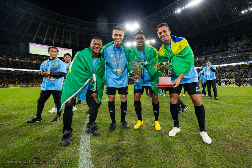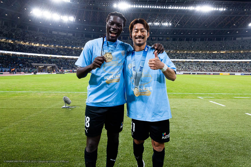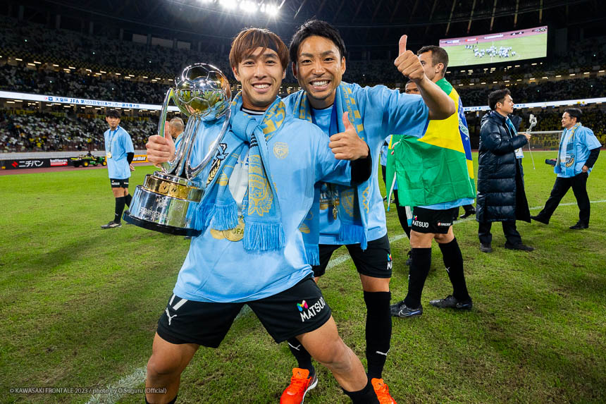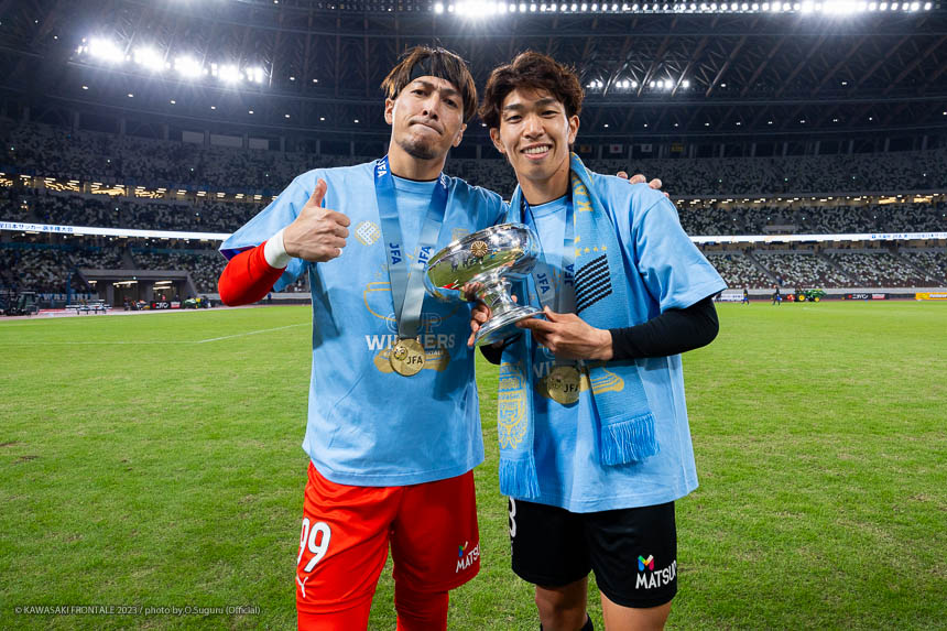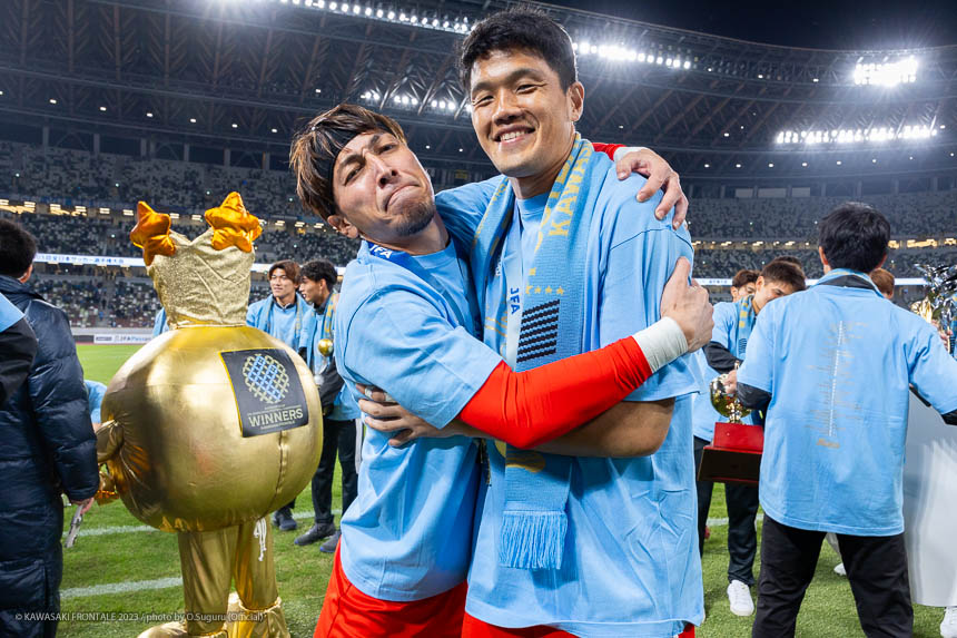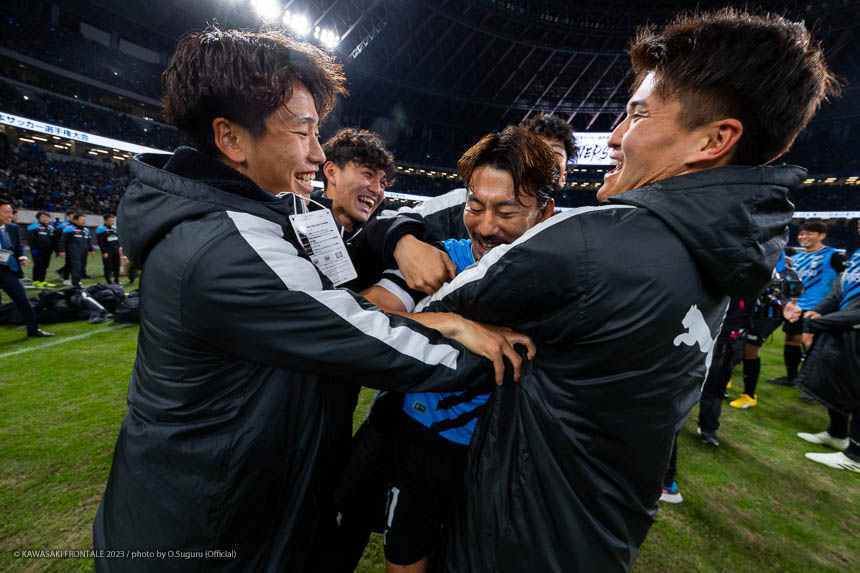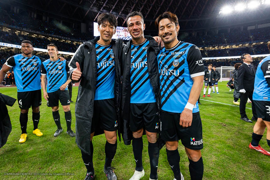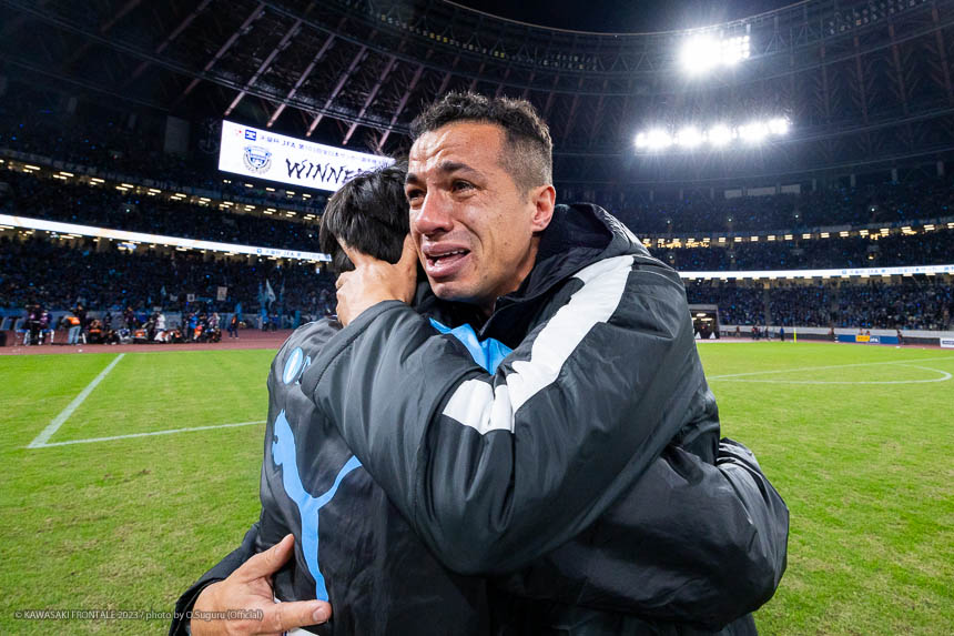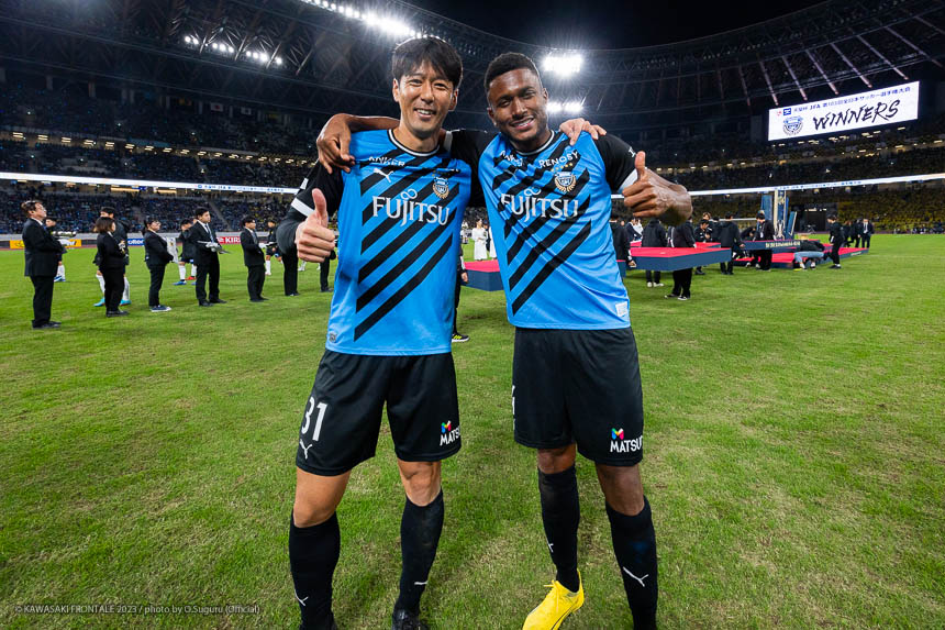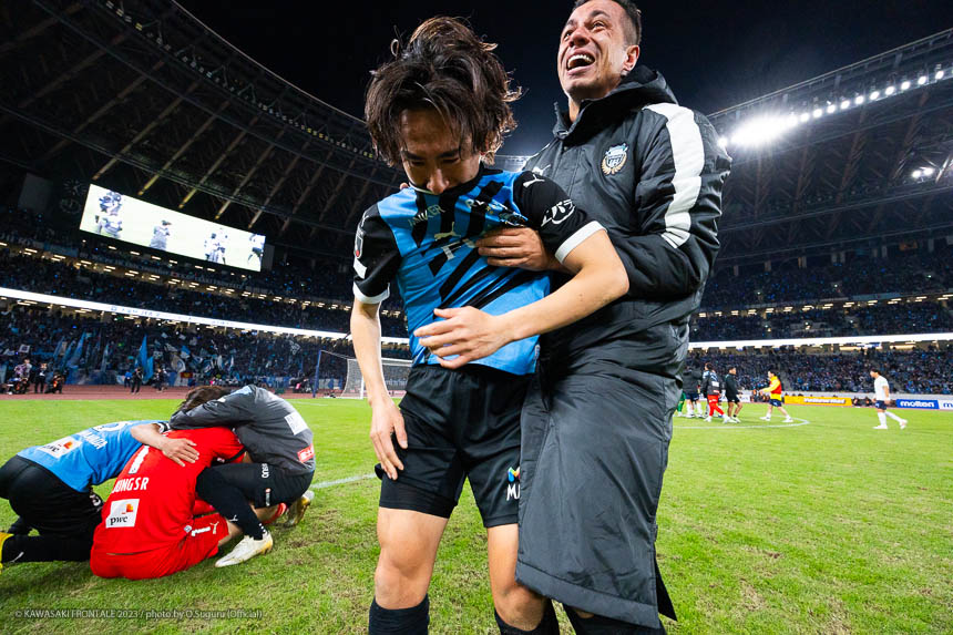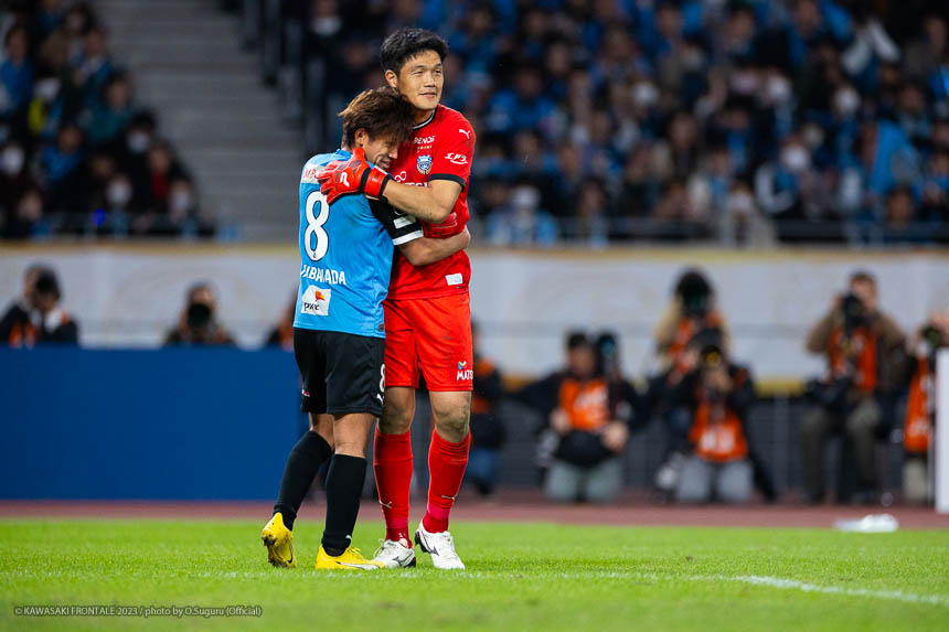 - タイトルを獲得してシーズンを終わらせるというのはすごく大事なこと。フロンターレのチーム力を示すことができたと思うし、自分の心に刻まれるゲームがまたひとつ増えた。試合内容としてはスタジアムのピッチ状態もあり、なかなか自分たちのリズムでプレーすることができなかった。しかし我慢しながら試合を運び、PK戦で勝利することができた。フロンターレのサポーター、柏さんのサポーター、両チームのサポーターの皆さんがすばらしいスタジアムの雰囲気を作ってくれた。サポーターの皆さんの力でこのようなすばらしい大会、すばらしいゲームになったと思う。