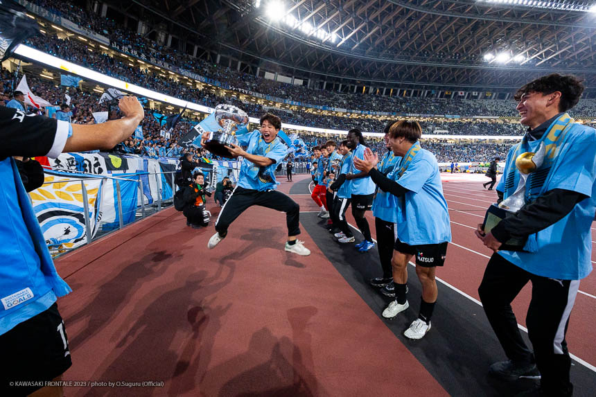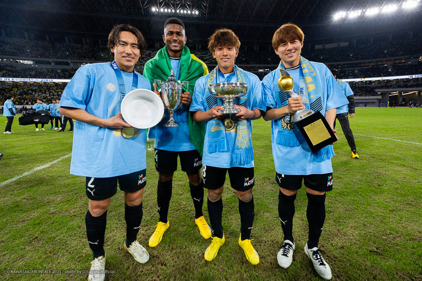 - あらためてタイトルを獲るのは大変だなと感じた。欲を言えば、このグラウンド状況でも自分たちのやりたいサッカーをやりたかったが、試合前から簡単なことではないと分かっていた。オニさん(鬼木達監督)もいいときも劣勢のときも試合が動くのは点が入ったときだと言っていたので、それが見事にハマった試合だった。前半を折り返した段階で、これだけ悪かったらあとは上がっていくだけだろと、みんなの頭のなかは同じ方向に向いていた。本当に結果だけにフォーカスした試合だった。リーグ戦は目指していた順位で終えることはできなかったが、ACLと天皇杯への懸ける思いや、タイトルを獲るチームのモチベーションの持っていき方をみんなが少しずつ理解して決勝に向かってこられた。すごく大きなタイトルだと思っている。