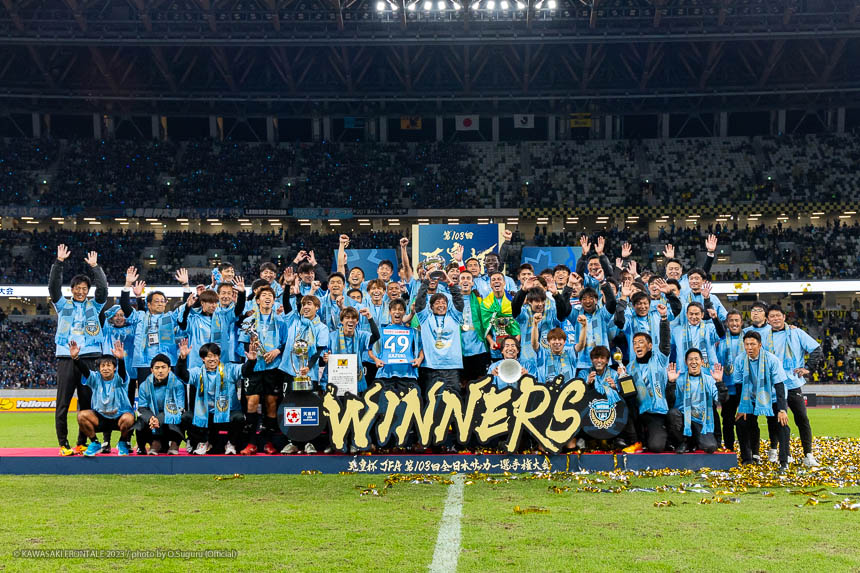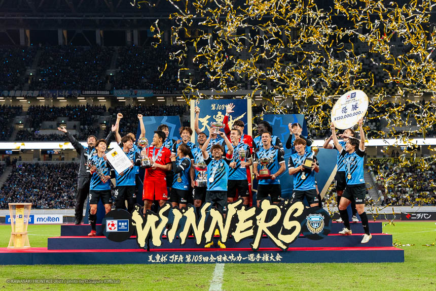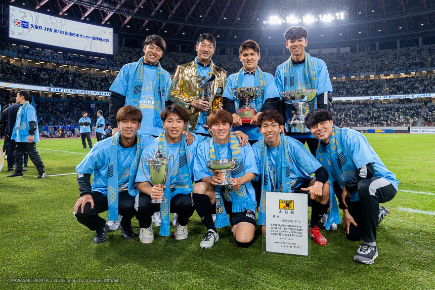 - カップ戦でいろんな選手が出場しながら勝ち上がれたことは本当にすばらしいことだと思います。こういう苦しいシーズンというのもありますが、思い入れは非常にありますね。この決勝の舞台に立てなかった選手たちもいて、正直前日まで誰をメンバーに入れるかはすごく悩みました。また、怪我をしている選手もそうです。例えばアサヒ(佐々木旭)にしても、高知(ラウンド16)の時に決勝ゴールで次へのコマを進めた1人ですし、高井(幸大)もゴールからボールをかき出してコマを進めた選手です。いろんな選手が関わってここまで来ているので、思いはすごく強いです。みんなの力で優勝したというのは、前回よりも非常にうれしい勝利かなと思います。