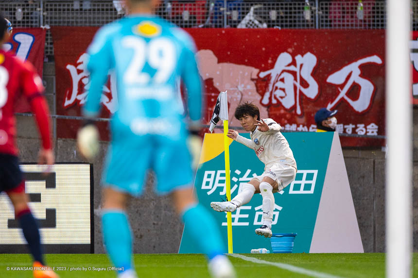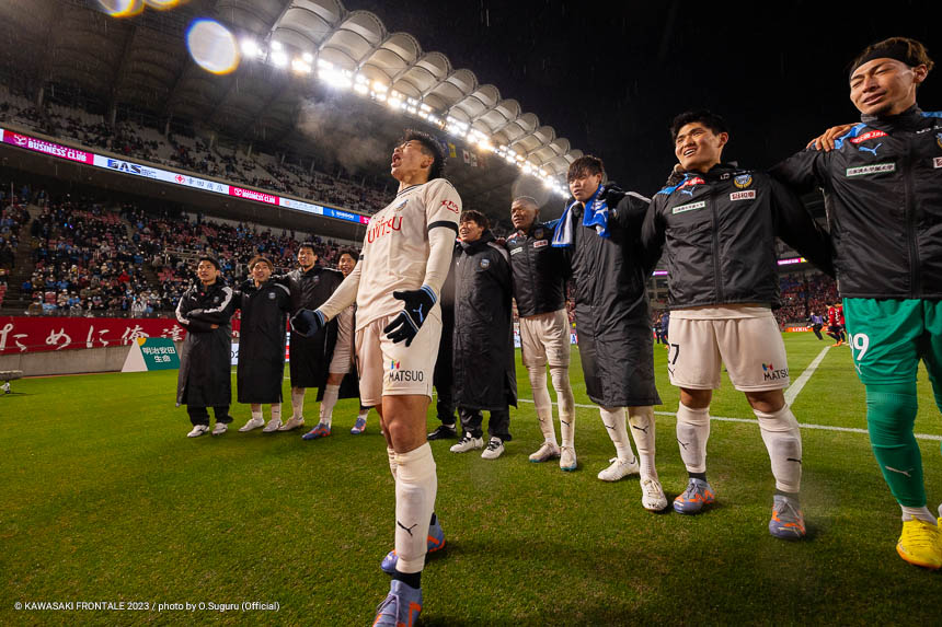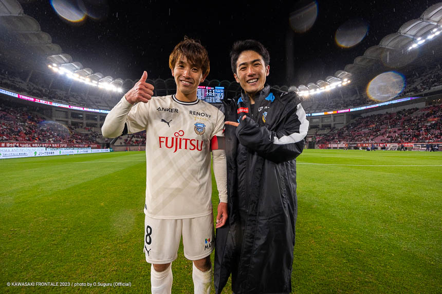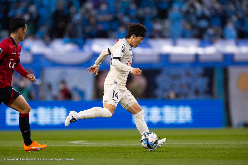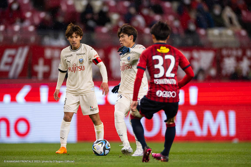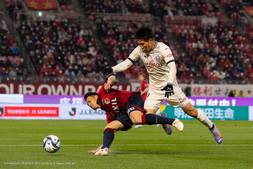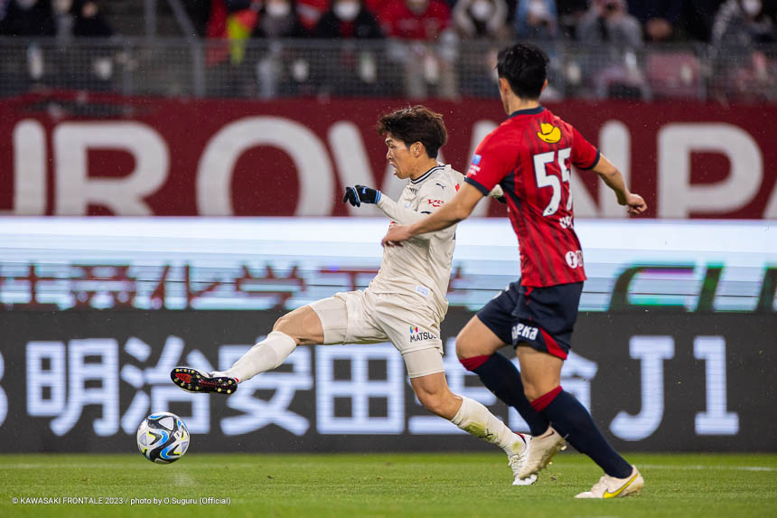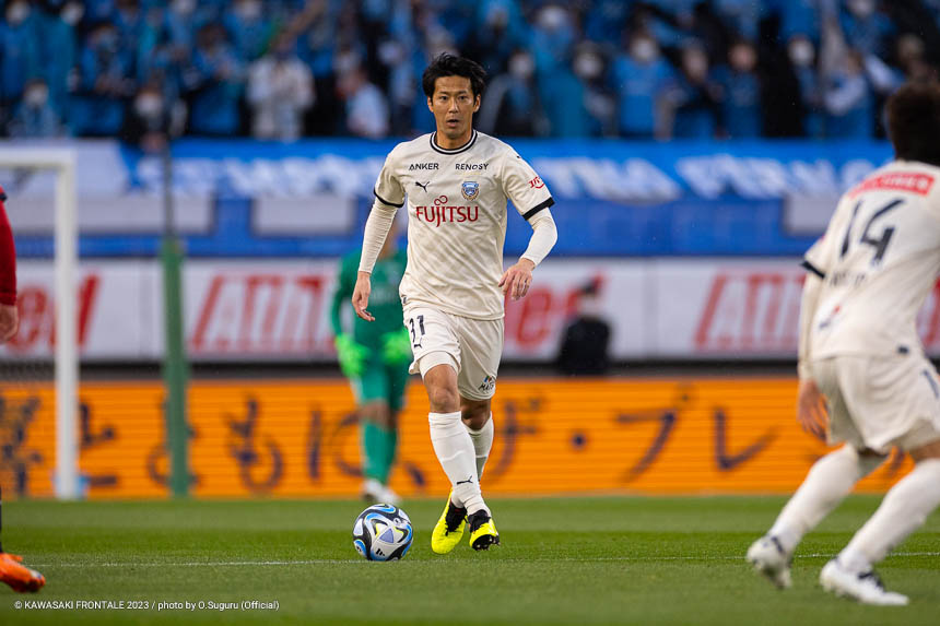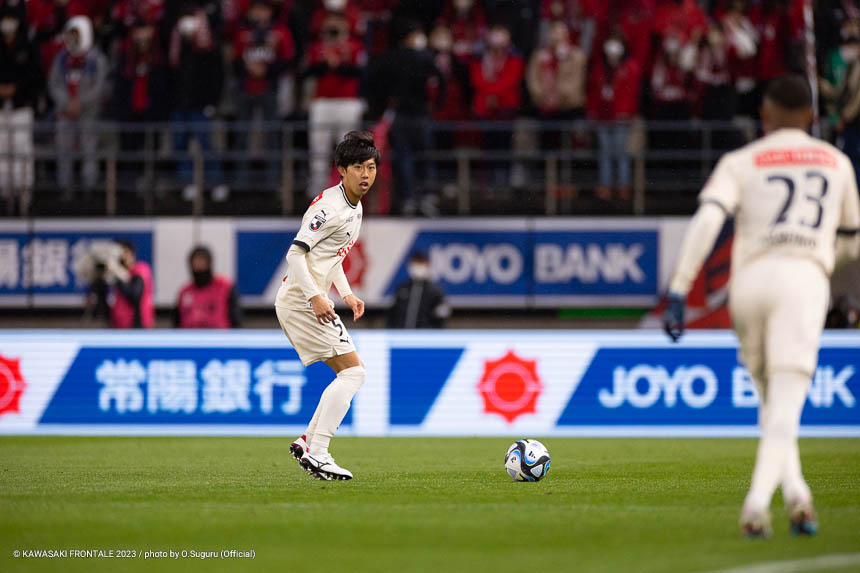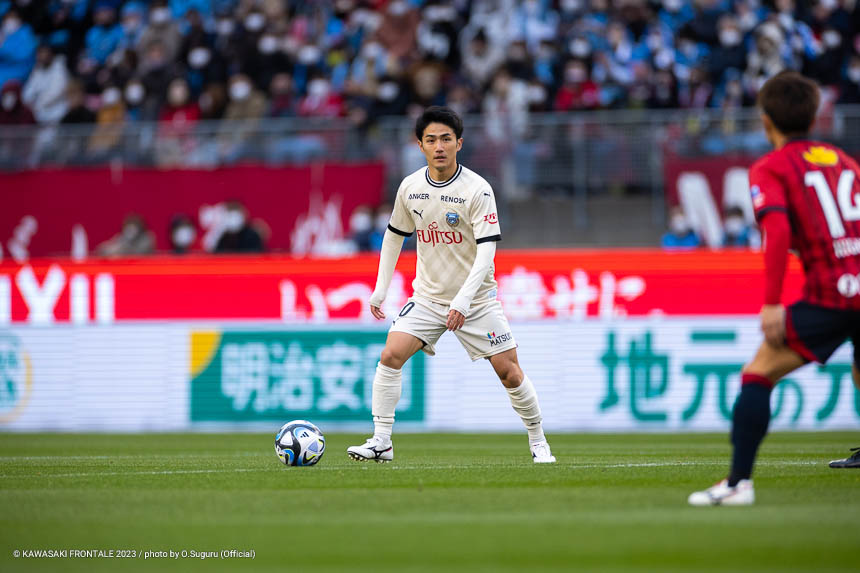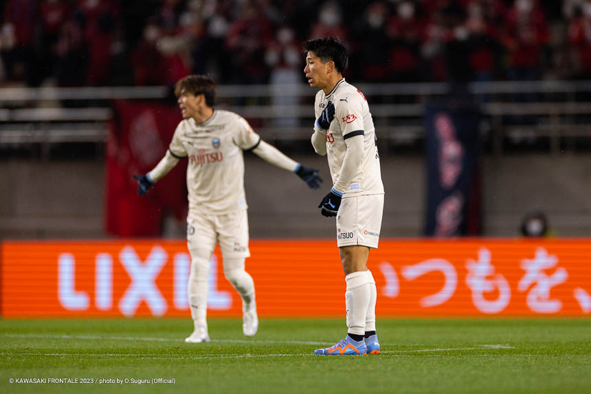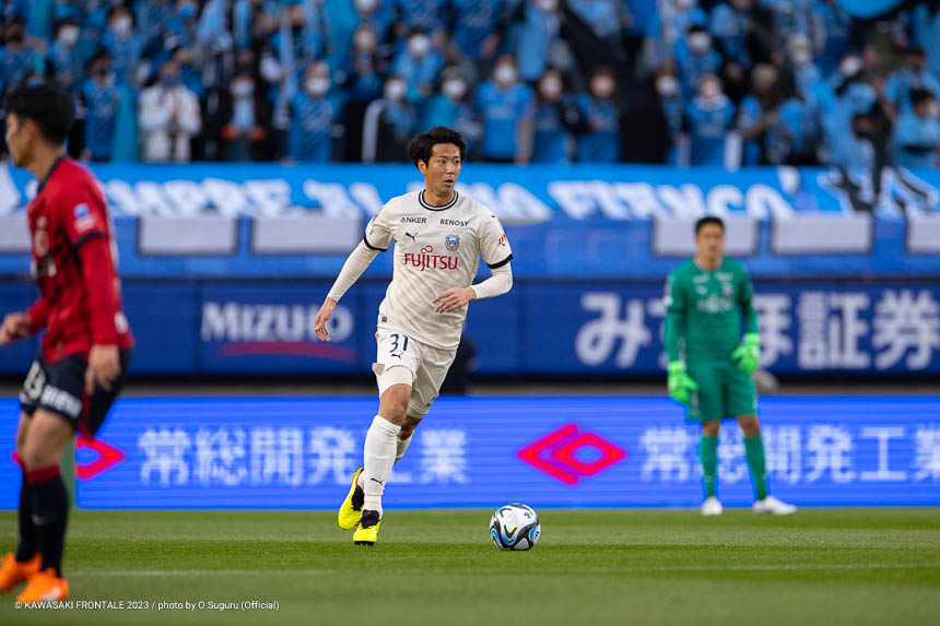- 開幕戦は負けていたので、失点しないようにと試合に入ったが、開始早々に失点をしてしまった。でも、そこで気持ちを切り替えて、(これ以上)失点をしなければ必ず点を決めてくれると思っていた。ずっと押し込んでいたし、そのなかでリスク管理をしっかりやっていこうというところを意識しながらやっていた。オニさん(鬼木達監督)も最後まで諦めないと言ってくれている。そのことをチーム全員が共有してやることができている。そこで今回みたいな逆転勝利で結果を出すことができたのは、自分たちにとってポジティブだし、勢いがつく勝ち方だったと思う。個人的には開始早々の失点だったり、自分たちで試合を難しくしてしまう状況になったところは反省点。もっともっと自分の攻撃面のところでよくなるんだと思ってやっている。続けていけば、よくなっていくと思っている。