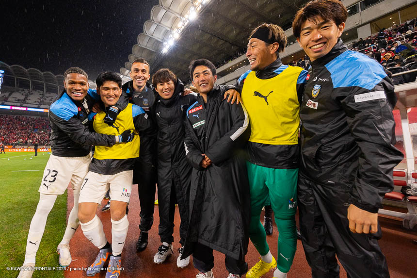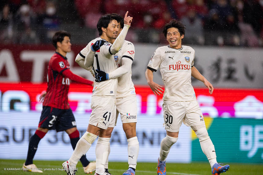 - 前半早い時間帯に失点をして、なかなか得点を奪えず苦しい時間があったが、自分が入って逆転をしようと思ったときに退場で数的不利になってしまった。でも、アカデミー時代に見ていたときも、フロンターレは数的不利になっても得点を奪えるチームだった。だから焦ることなく絶対にチャンスがあると思っていた。気持ちを落とさずに準備できていたことがゴールにつながったのかなと。(ゴールシーンは)アキさん(家長昭博)がああいうプレーをするのはみんな分かっていること。自分はゴールを奪うために反応して合わせることができたし、気持ちで押し込むことができた。今シーズンはJリーグ奪還もそうだし、自分が10ゴールとることを目標に立てているので、2試合目で少ない時間のなかで得点を残すことができたのは大きい。チームとしても大きいゴールだったが、自分としてはもう1点とって自分のゴールを決勝点にして勝ちたい思いがあった。そこが求められる部分。ただ、流れを変える意味ではいいゴールだったなと思っている。