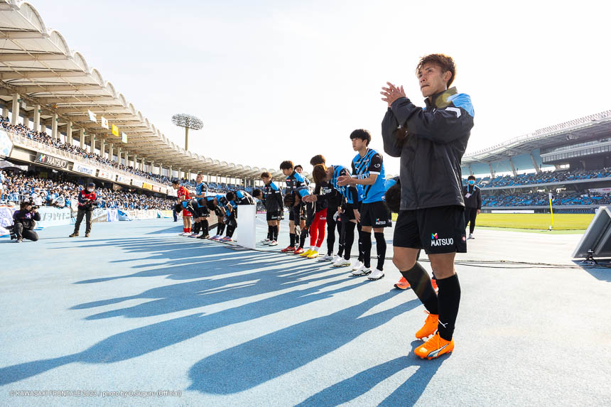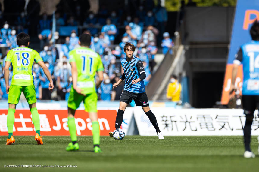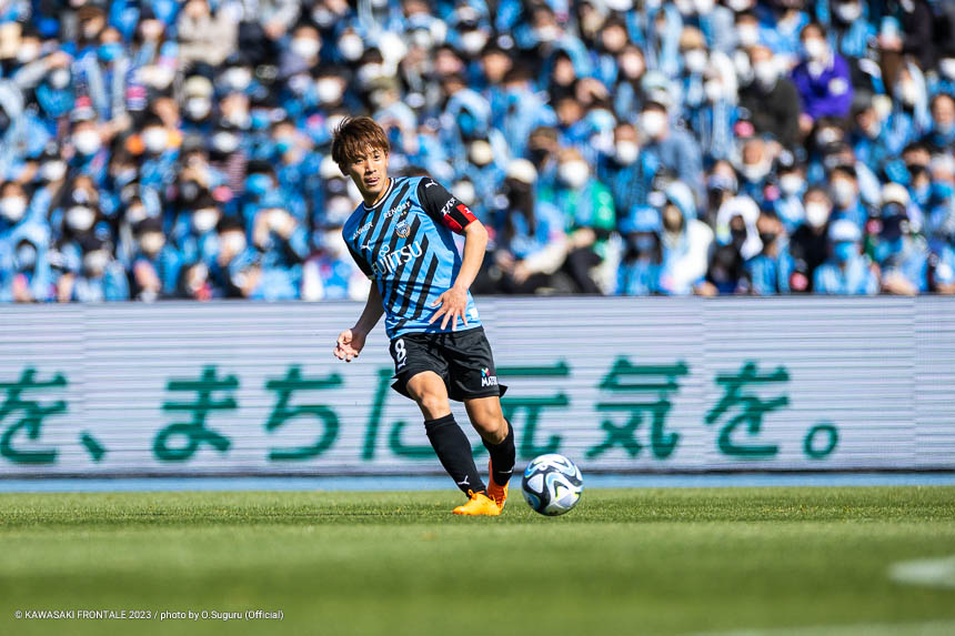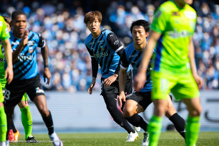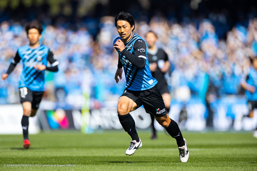 - (得点シーンは)ちょっとパスがズレてしまったが自分の前にボールが転がってきて、スペースと人の位置を冷静に見てファーストタッチでいいところにボールを置けたのが得点をとれた要因だと思う。落ち着いて流し込むことができたし、去年に比べればだいぶ落ち着いたゴールだったかなと。負けている状況だったし、ゴールを取ったときは追いつけたということと、等々力でゴールを決めることができたという思いだった。古巣に恩返しという意味でも、結果を残すことができたのはよかった。追いついてから15分ぐらいあったし、もう1点決められるチャンスはあった。そこで決め切らないといけないし、失点のところは改善しなければいけない。全試合で失点しているので、そこはしっかり見つめ直しながら。3点以上取ることもオニさん(鬼木達監督)が言っていることなので、まだまだ足りないと思っている。