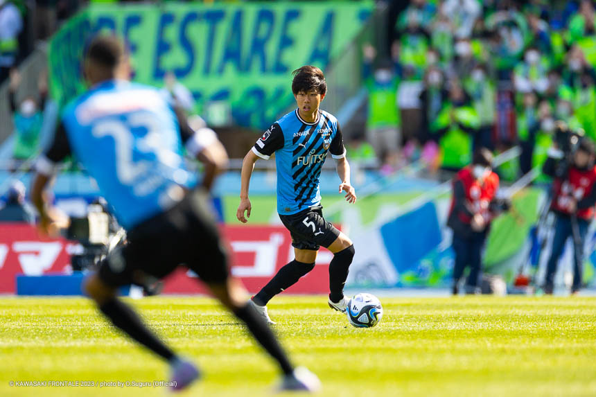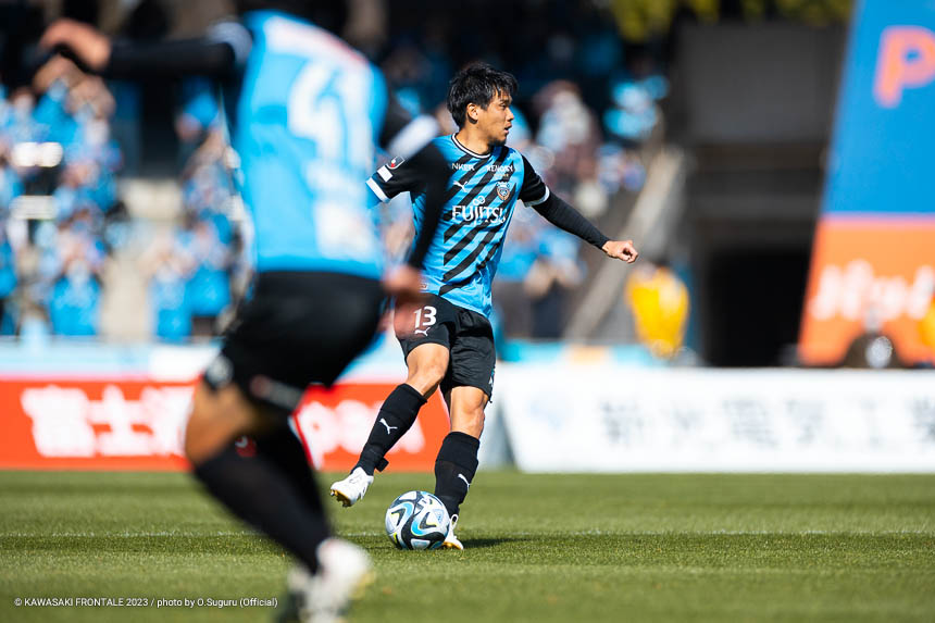 - 相手が前からかなり来るというのは想定していたが、準備してきたことがなかなかうまく出せなかった。あとはマンツーマンでマークにつかれていたので、パスだけではなくて個人ではがす選手が出てこないと厳しかったのかなと。3バック気味にしても3人がプレッシャーをかけてくるような形だったので、前進するのがなかなか難しかった。試合が終わってからケントくん(橘田健人)とも話したが、自分がセンターバックに入ったときにケントくんを一回使えるとマークをはがせるという話をした。無理してでも前半から真ん中につけて前進できれば、もっと楽にはがせたのかなと。終盤はサイドからパワーを持ってしかけるイメージだったと思うが、間のリョウタくん(大島僚太)にボールをつけたことで得点につながった。最初から外ではなく中を見てつければ、チャンスをもっと増やせたのかなと思う。
