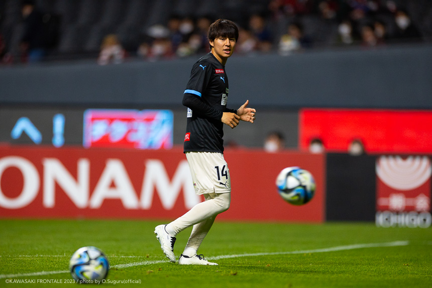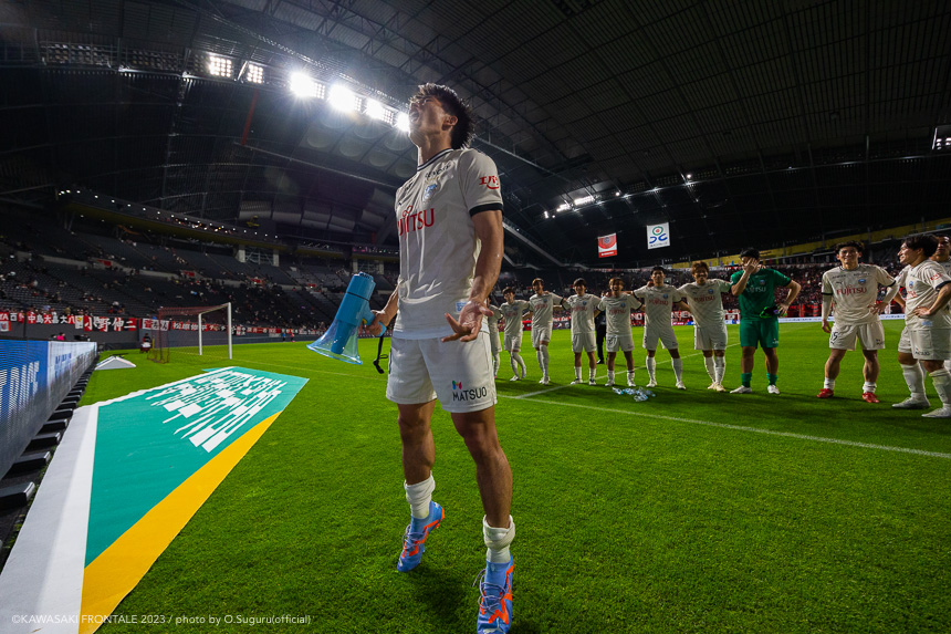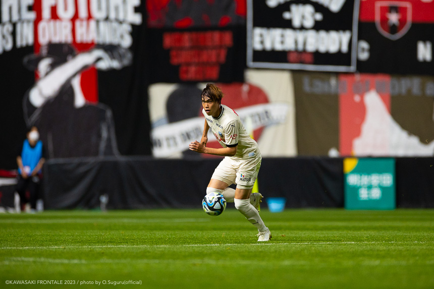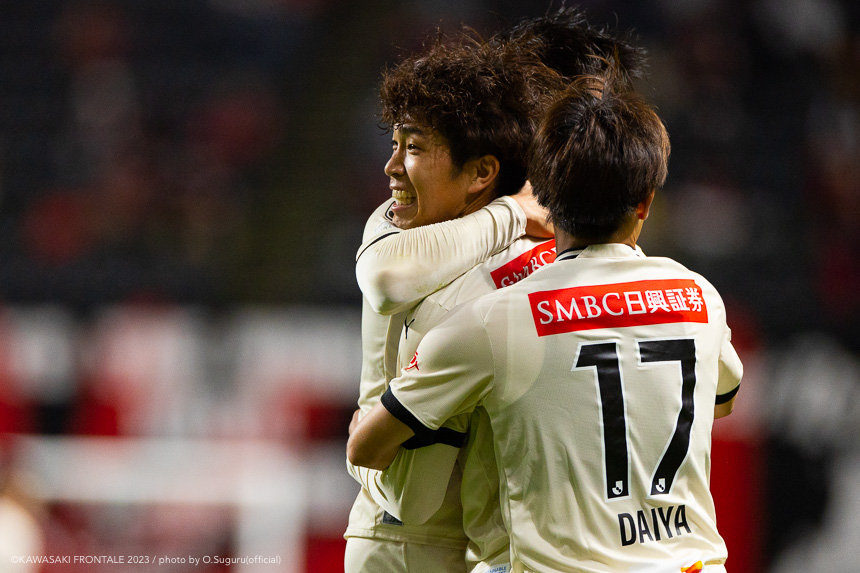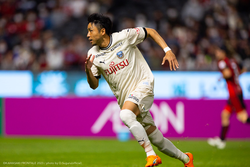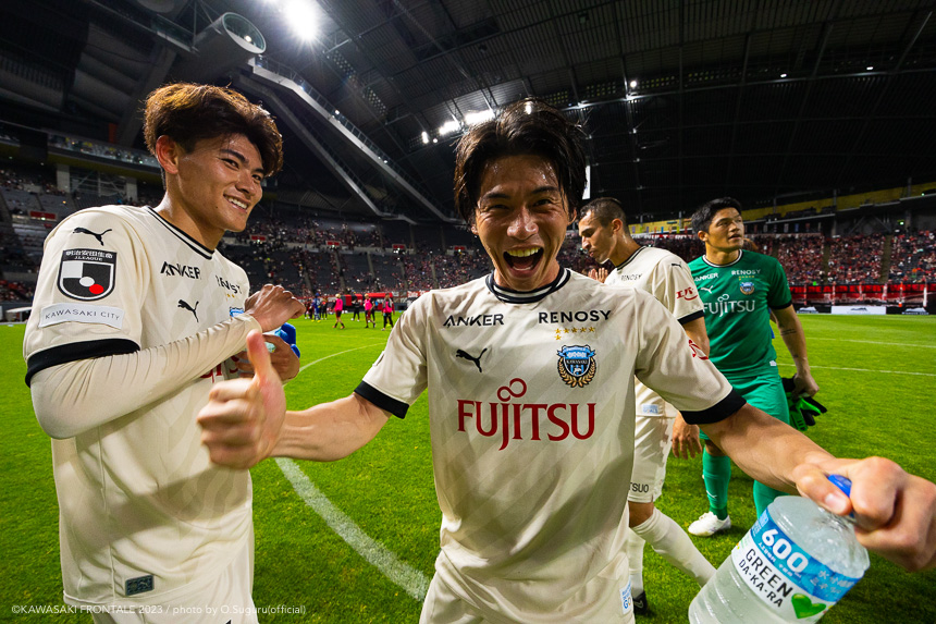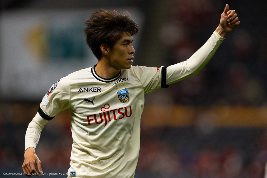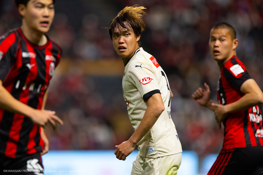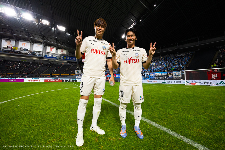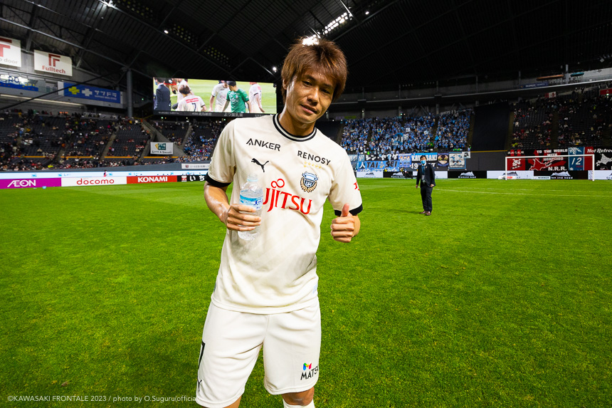 - 内容を求められるところはあるが、ここ数試合勝っていなかったので勝利を手にしたことは大きいと思う。絡んだ2得点ともオニさん(鬼木達監督)から話があったように、相手がマンツーマンに近い守備なので、ポジションに関係なく流動的に動いて背後に流れることでチャンスを作ることができた。競り合いは自分の強みでもあるので、得点につながったのはよかった。アキさん(家長昭博)が真ん中だったので、アキさんが落ちたときに食いついたスペースを狙おうと話していた。1点目のタイセイ(宮代大聖)が決めた得点も、試合前にソンさん(チョン ソンリョン)と内側から走れるようにと話していた。そういうコミュニケーションがあったからこそ取れたと思っている。
